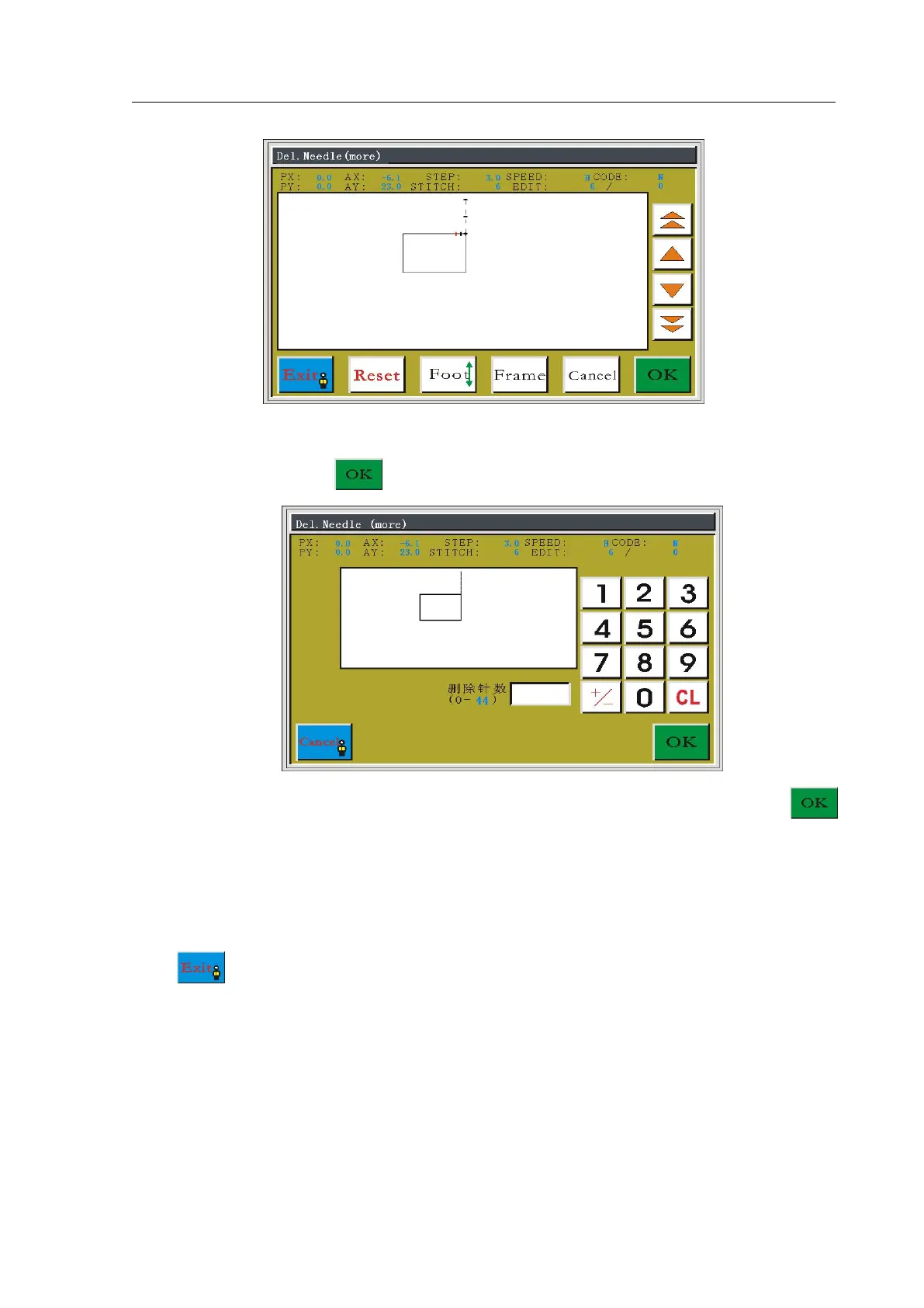 needle position. After deleting, subsequent stitches will move as a whole.