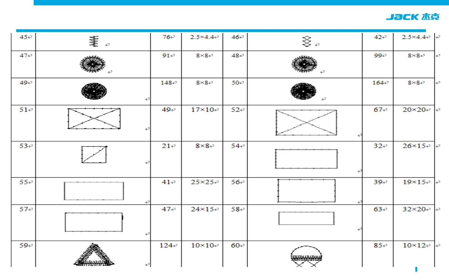 Jack JK-1900BSK - List of Bartack Patterns