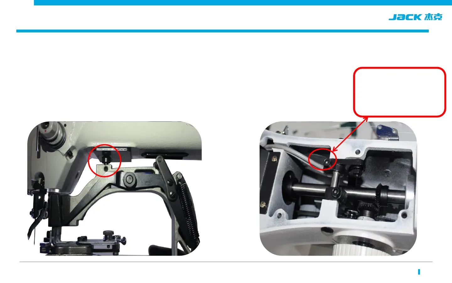 Press the presser foot down, adjust the position of the retainer, keep the