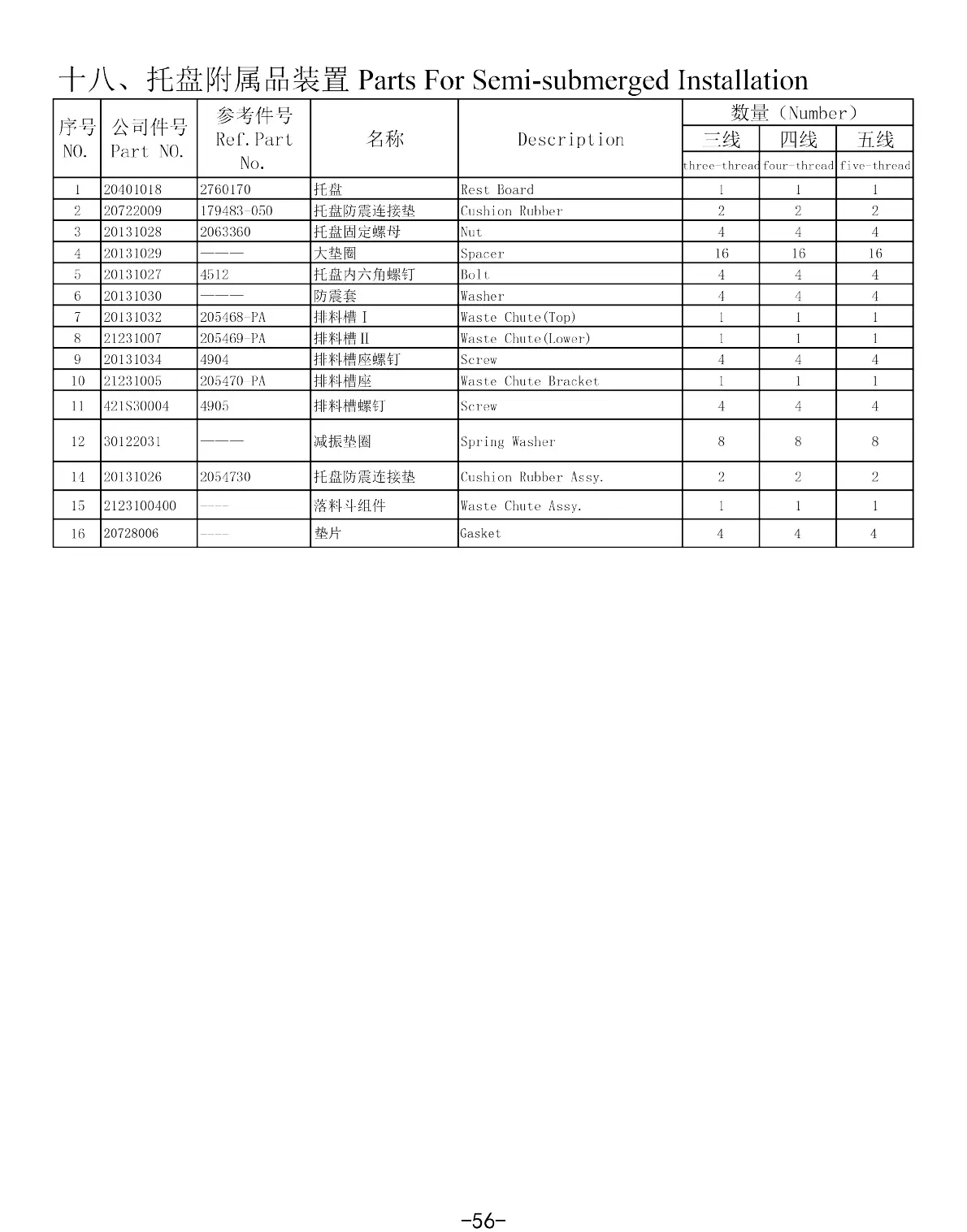 Parts For Semi-submerged Installation