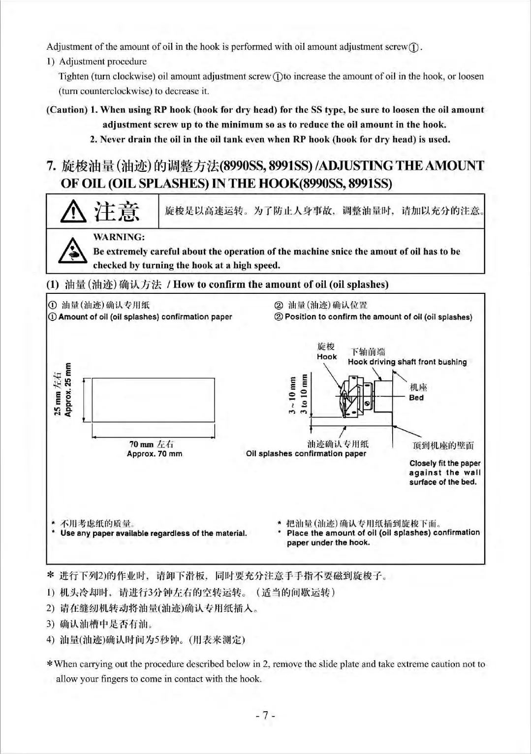 oil in the hook is performed with oil amount adjustment screwQ).