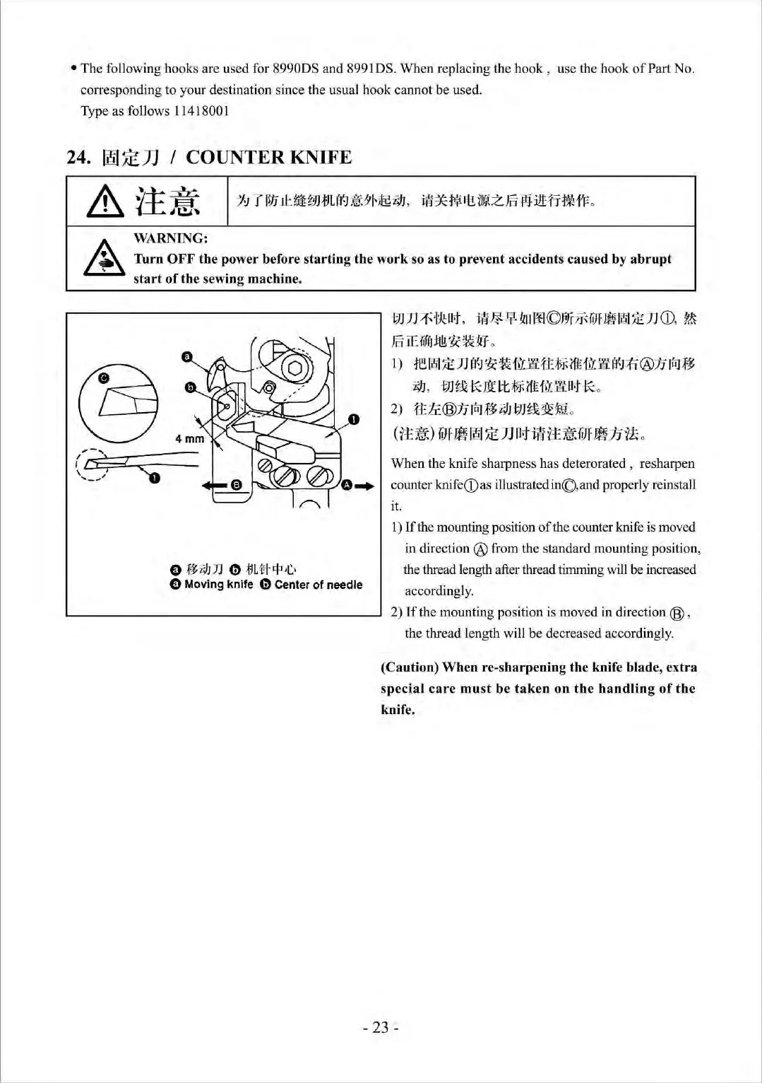 (Caution) When re-sharpening the knife blade, extra