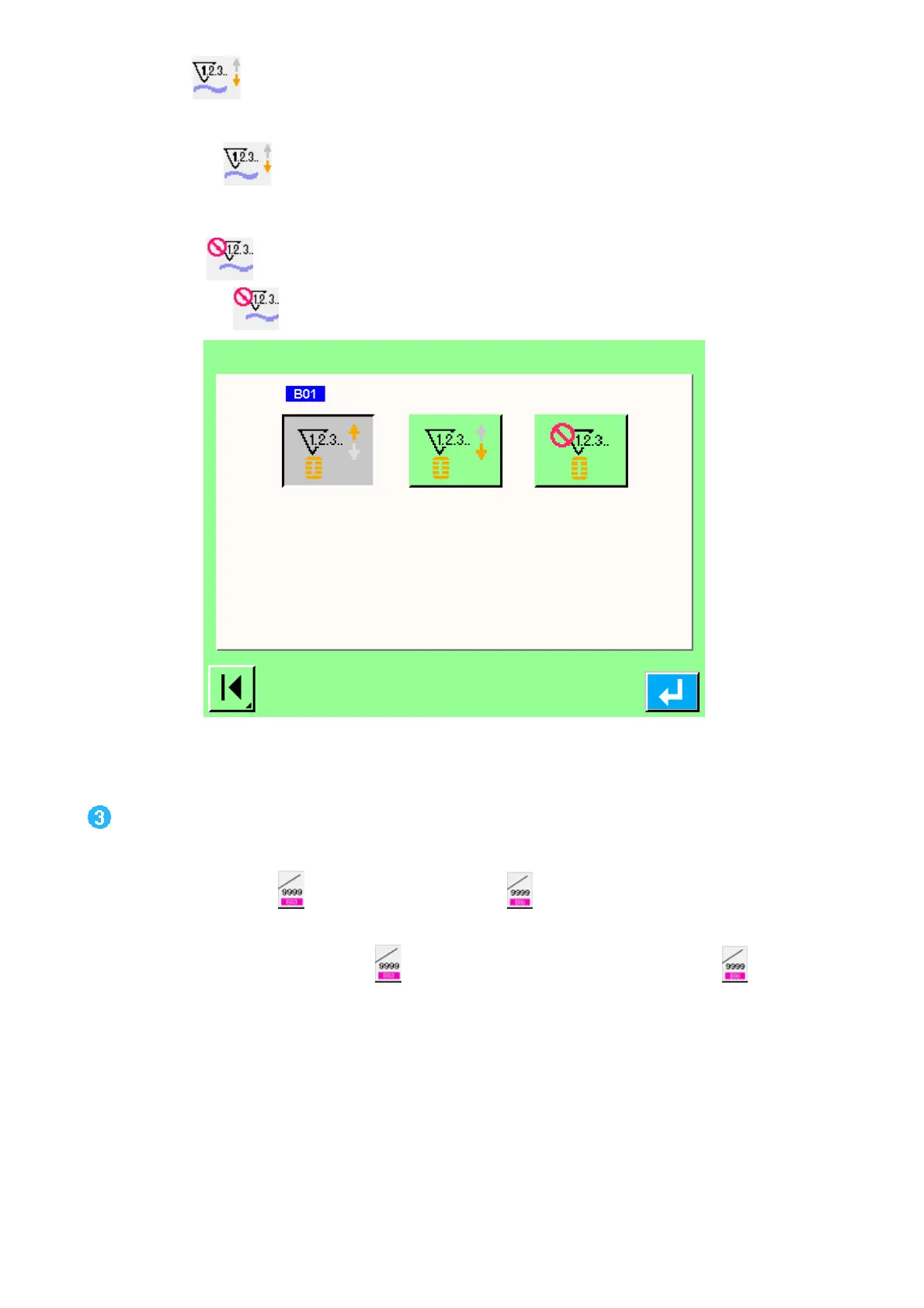 sewing counter. Also, you can Press area B(counter set value, see figure 9.4(b) ), the operation have the same details.