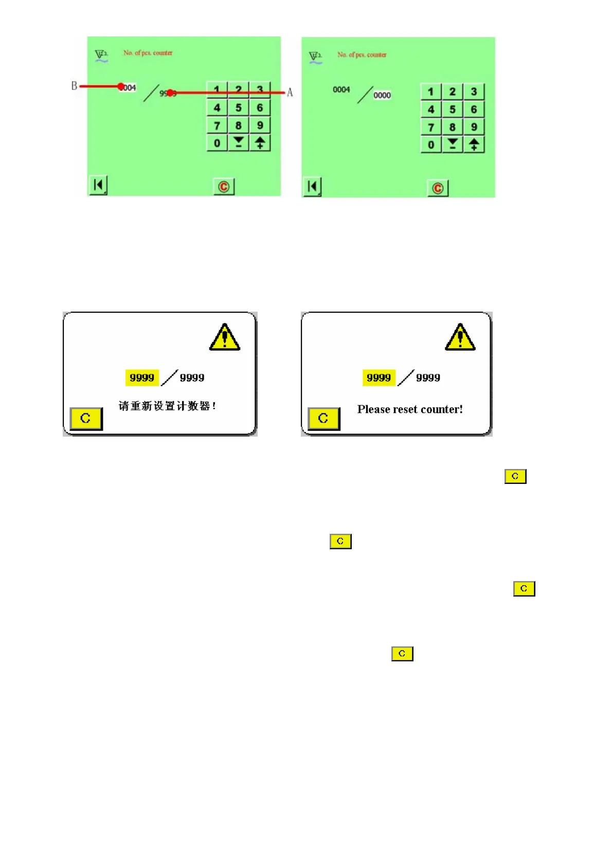 value, the resetting counter screen is displayed. Press CLEAR button