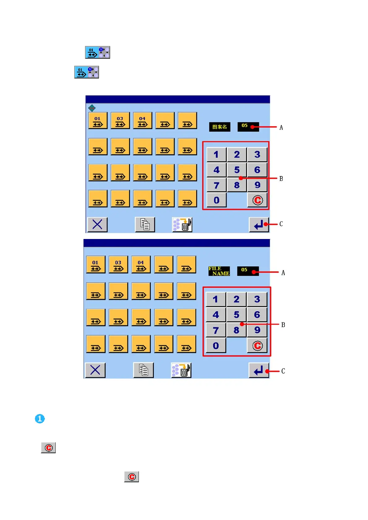 in data input screen(see figure 11.1), the <continuous stitching file management>screen is