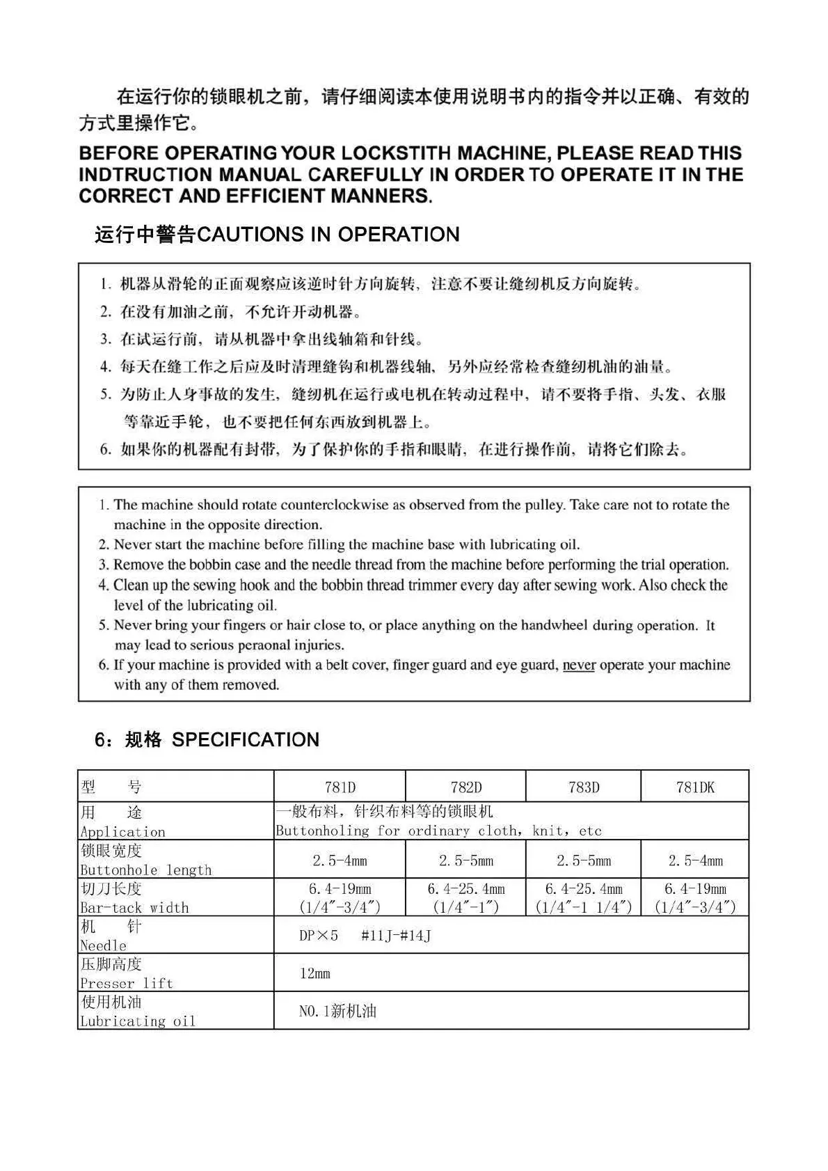 BEFORE OPERATING YOUR LOCKSTITH MACHINE, PLEASE READ THIS