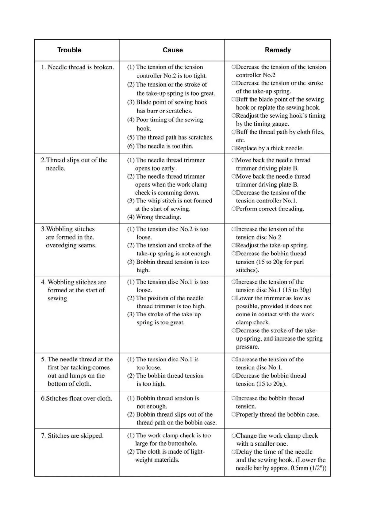 (2) The bobbin thread tension ODecrease the bobbin thread