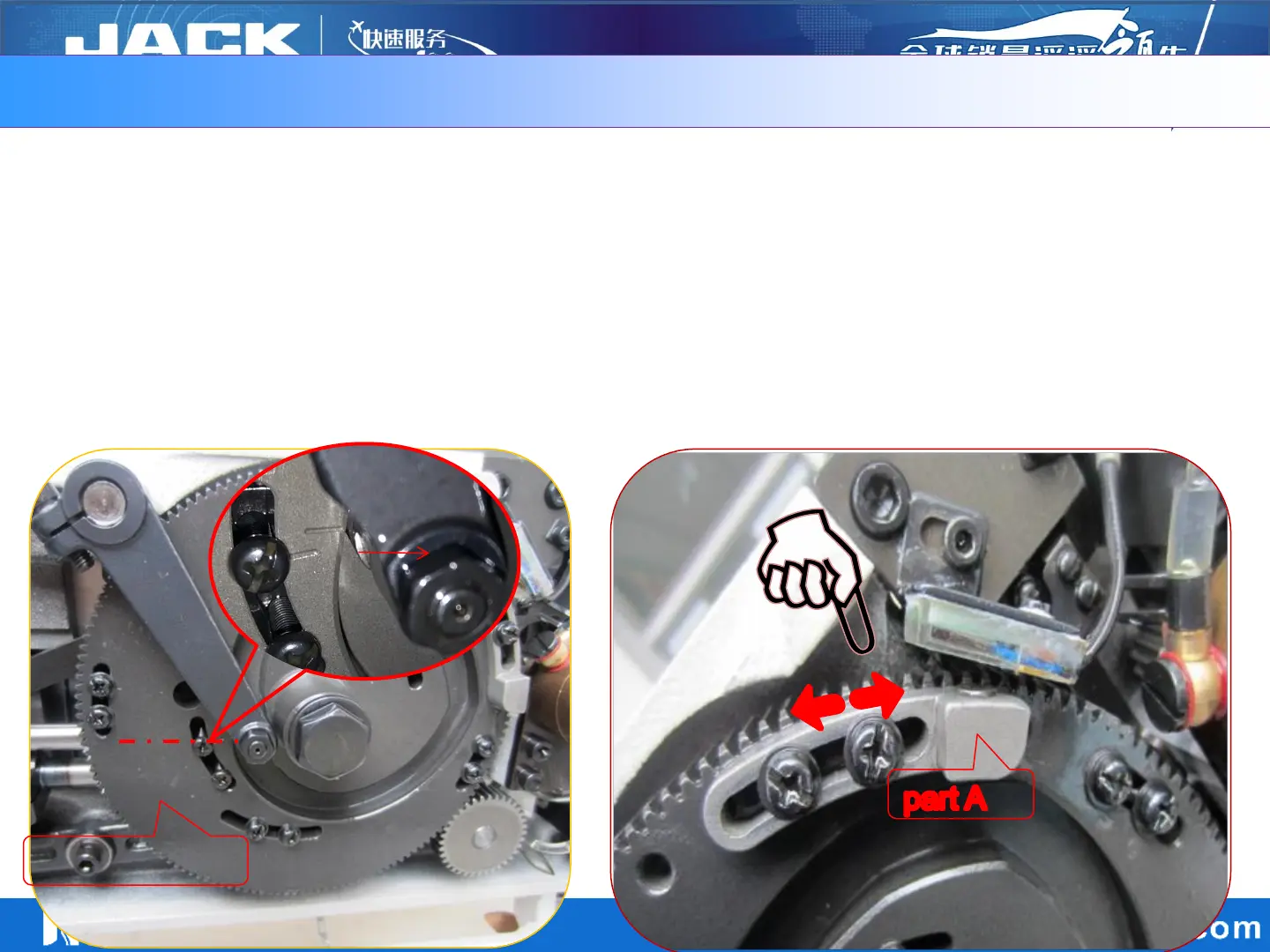 position of the roller pin screw. If the position is not correct, move the part A of the right