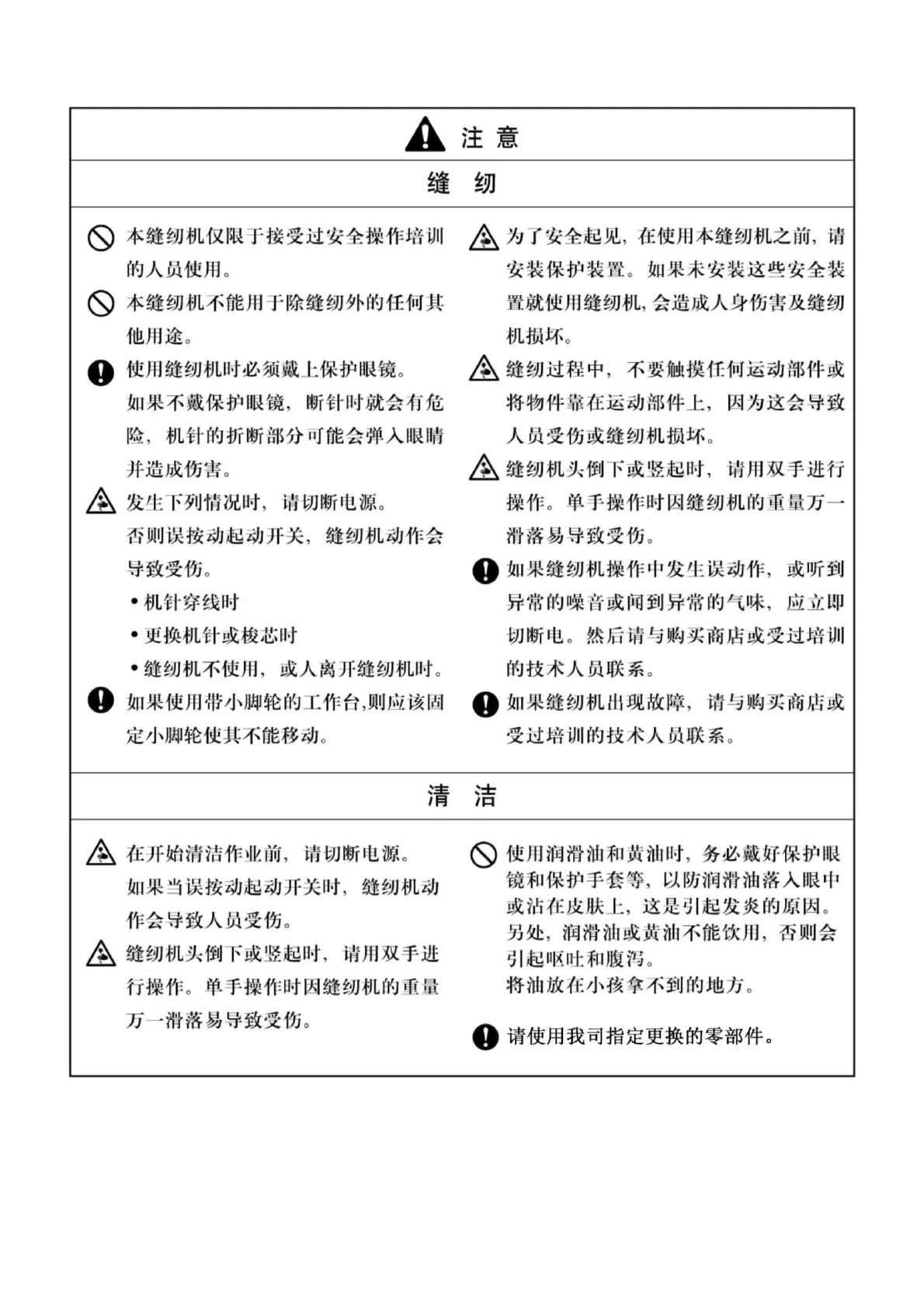 Jack JK-T9270D - Operational Safety; Sewing Safety; Cleaning Safety
