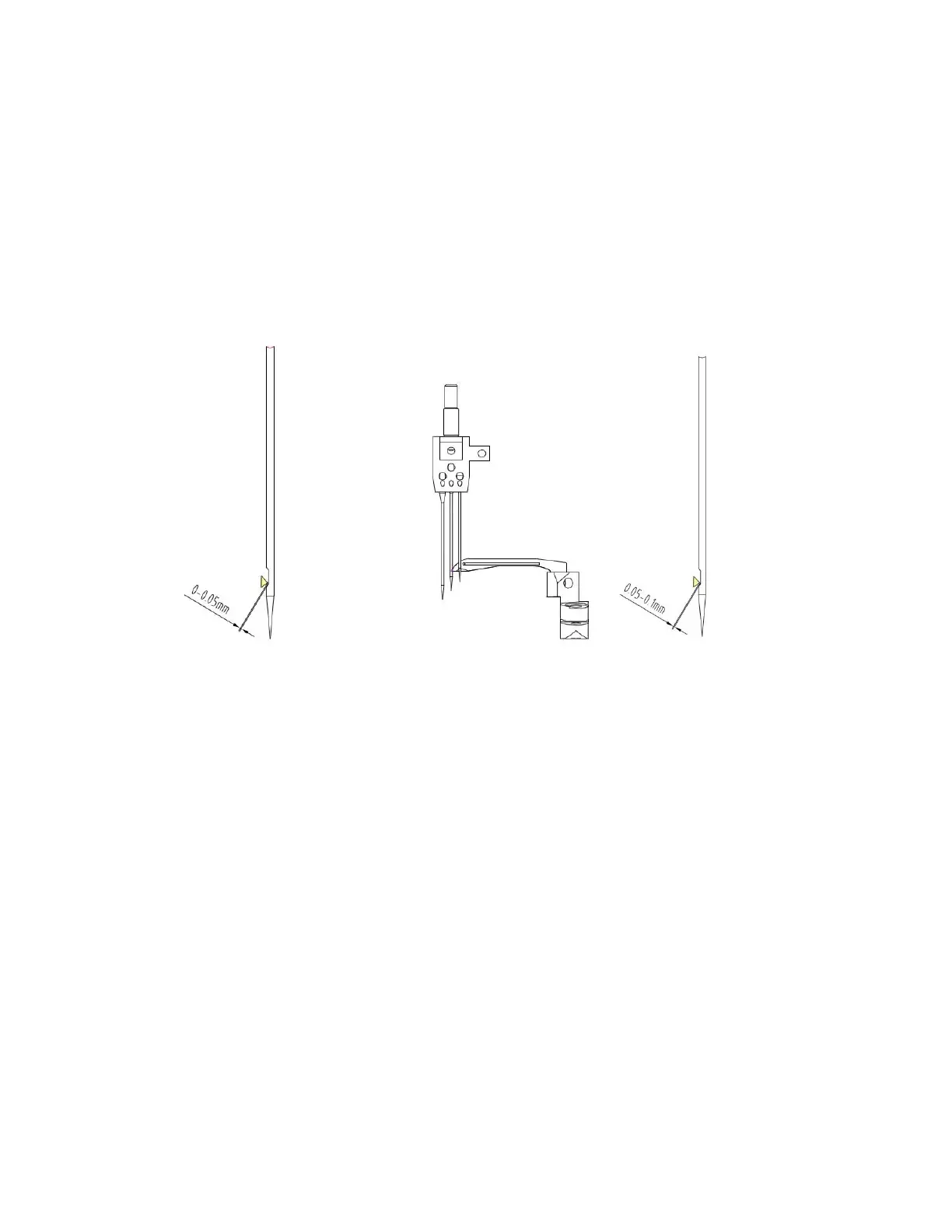 始到右针中心时>右针和弯针的先端前后间隙为0-0.05mm(图10)