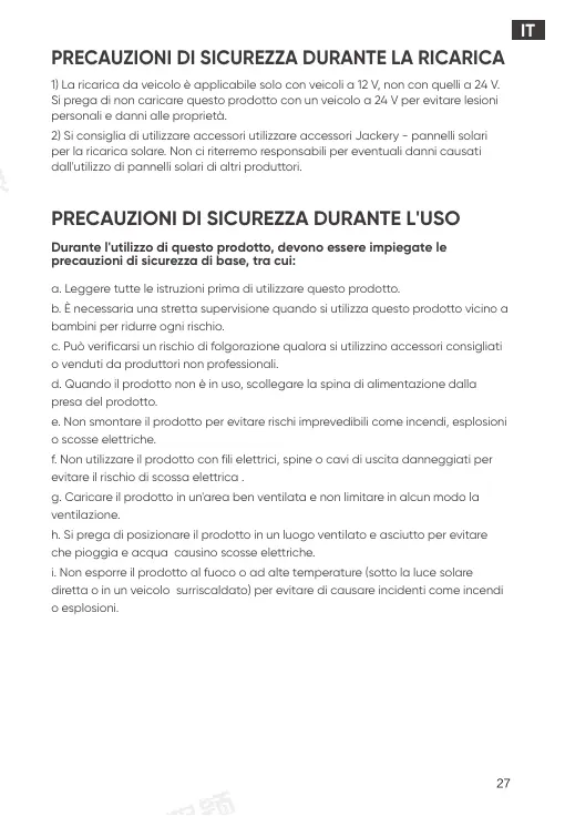 2) Si consiglia di utilizzare accessori utilizzare accessori Jackery - pannelli solari