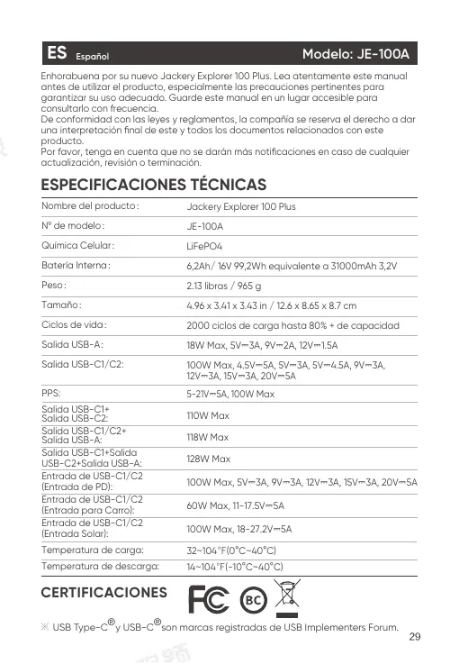 Enhorabuena por su nuevo Jackery Explorer 100 Plus. Lea atentamente este manual