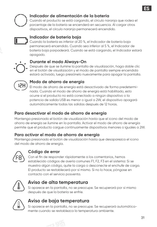 ahorro de energía se ilumine en la pantalla. Activar el modo de ahorro de energía
