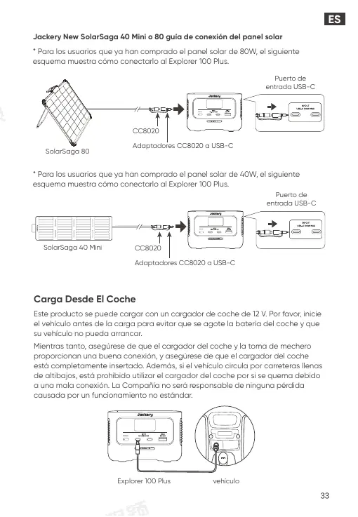Jackery New SolarSaga 40 Mini o 80 guía de conexión del panel solar