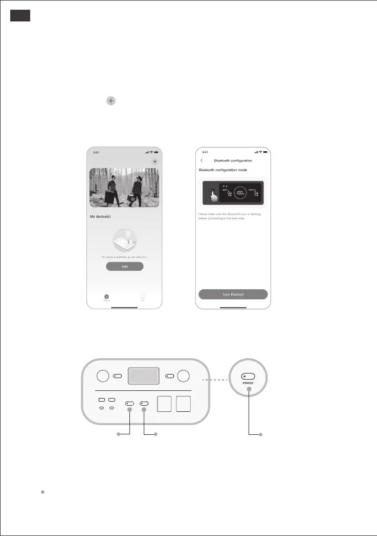 Remarks: After being turned on, if the APP is not connected within 5 minutes, the device will automatically turn o