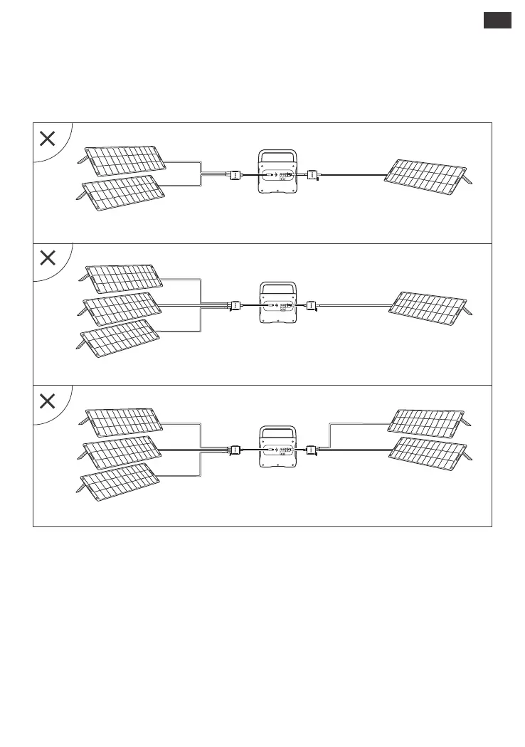panneaux solaires à un seul port d’entrée, il faut les diviser en deux groupes. Les trois panneaux solaires dans