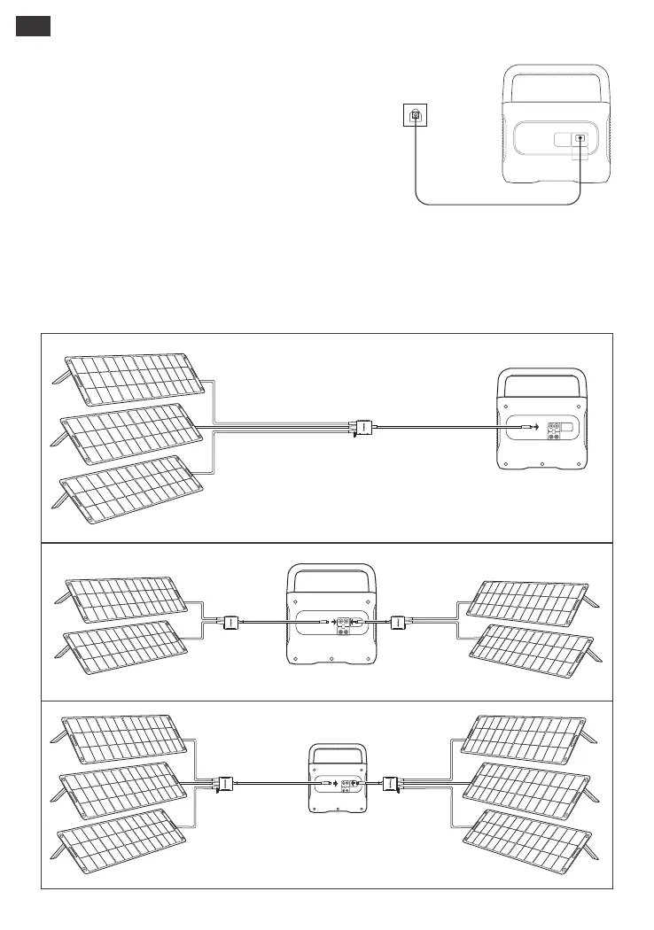 3 o 4 pannelli solari, fare riferimento alla figura seguente per effettuare a ricarica tramite l'adattatore