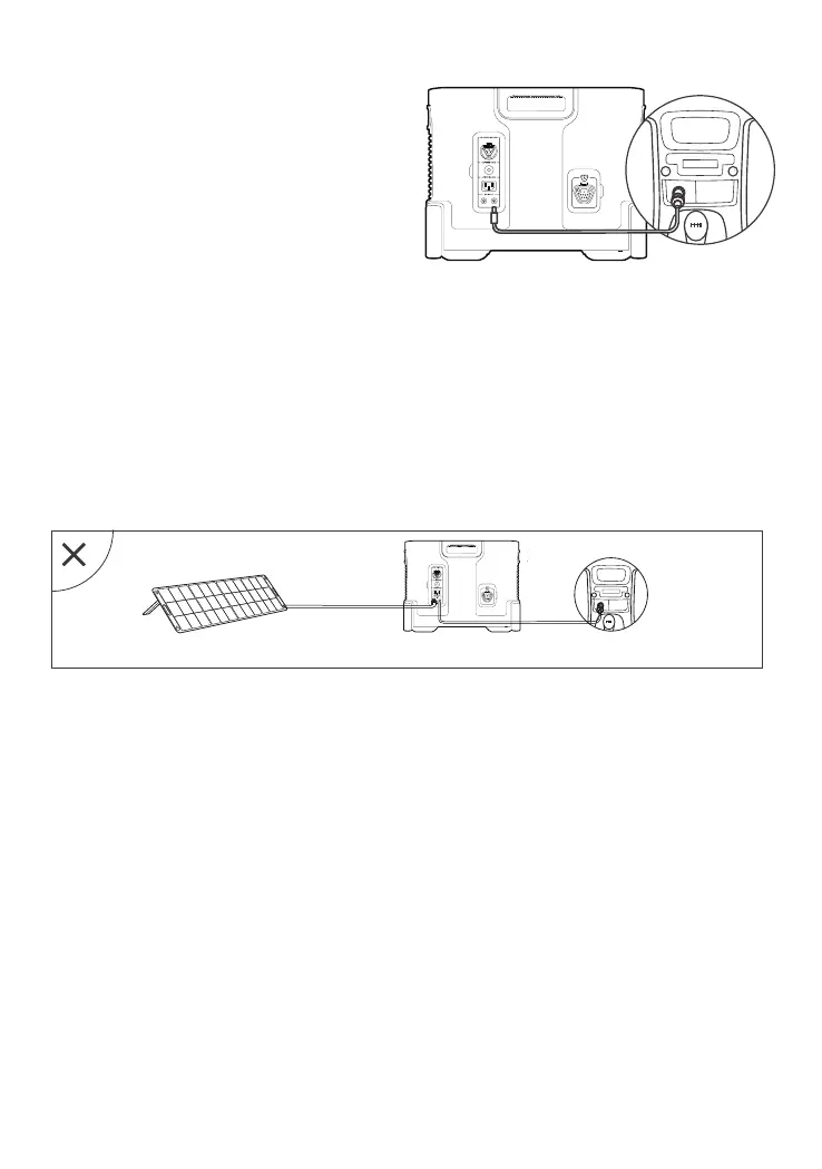 ❹ Se recomienda utilizar los accesorios de Jackery - paneles solares para la carga solar. No nos