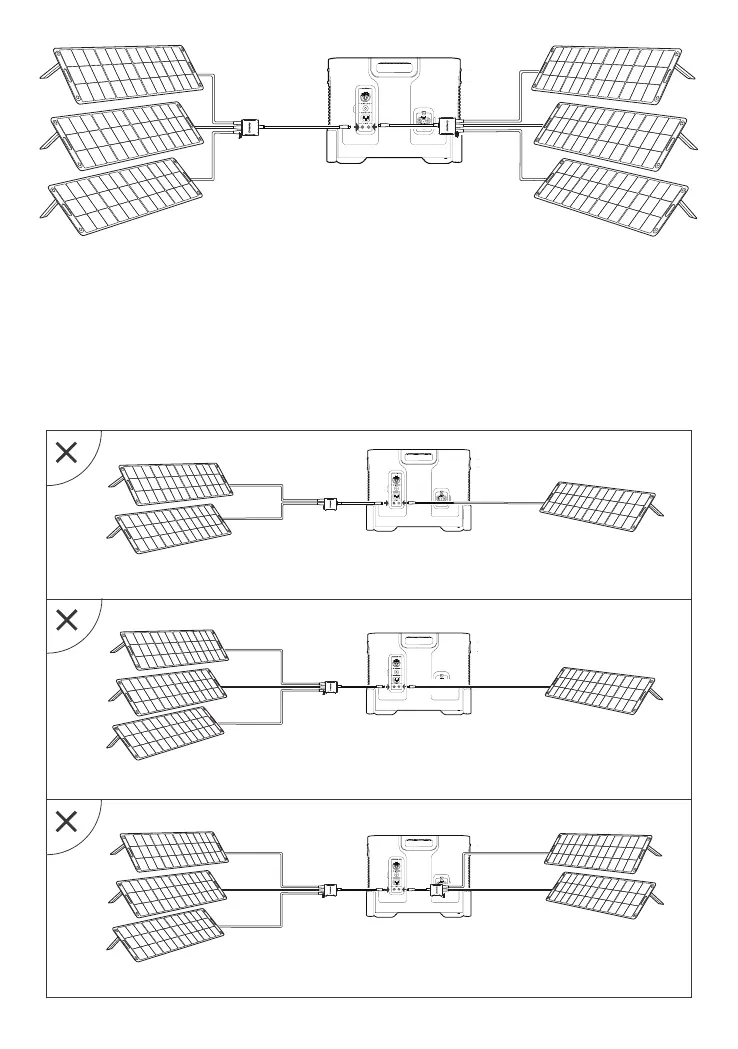 solar panel and the number of solar panels in the two inputs must be the same to avoid damage or