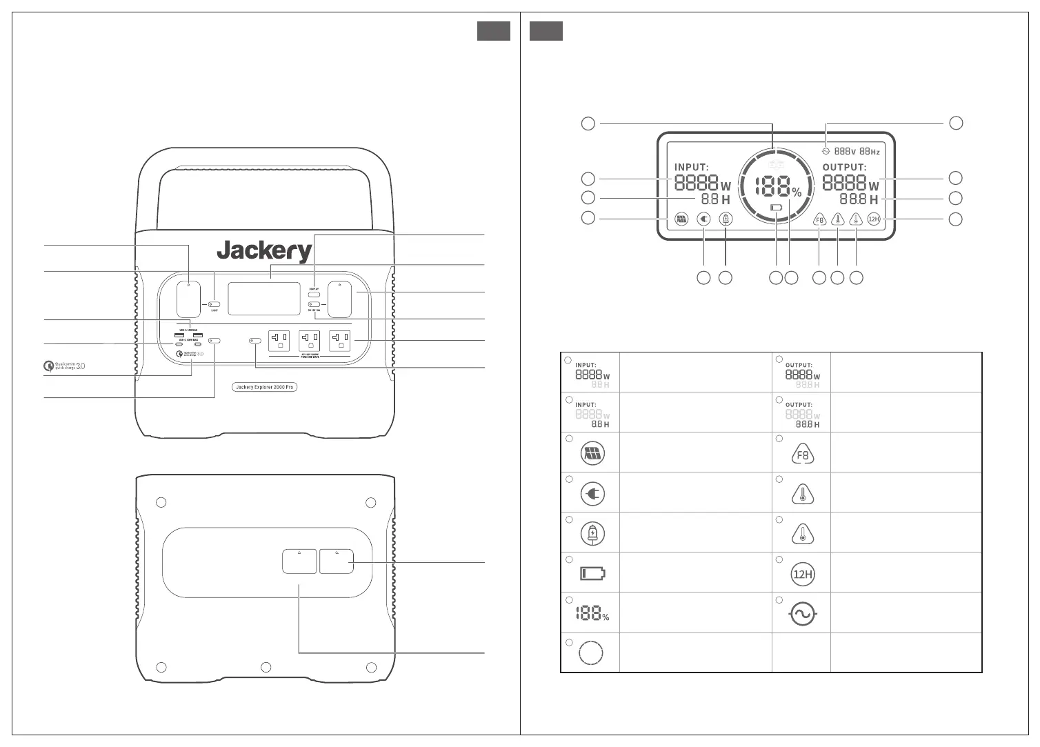 Jackery Explorer 2000 Pro - Getting to Know Your Gear; Product Appearance Overview; LCD Display Guide