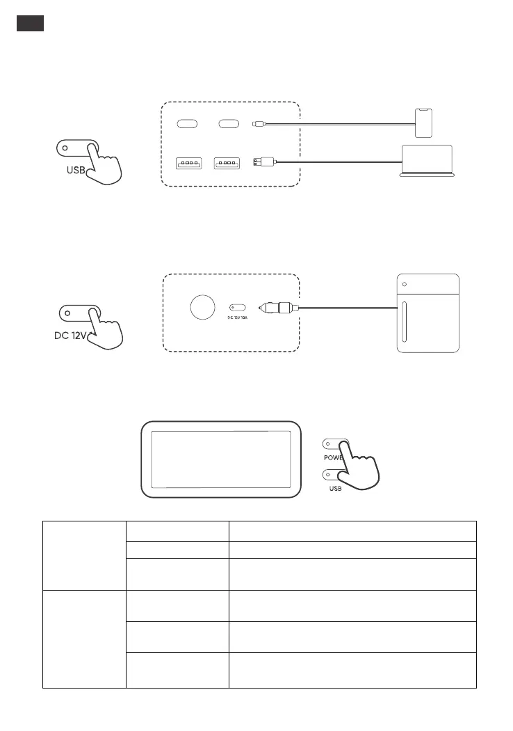 Ensure the main power button is on. Press the USB button to turn on the USB outputs