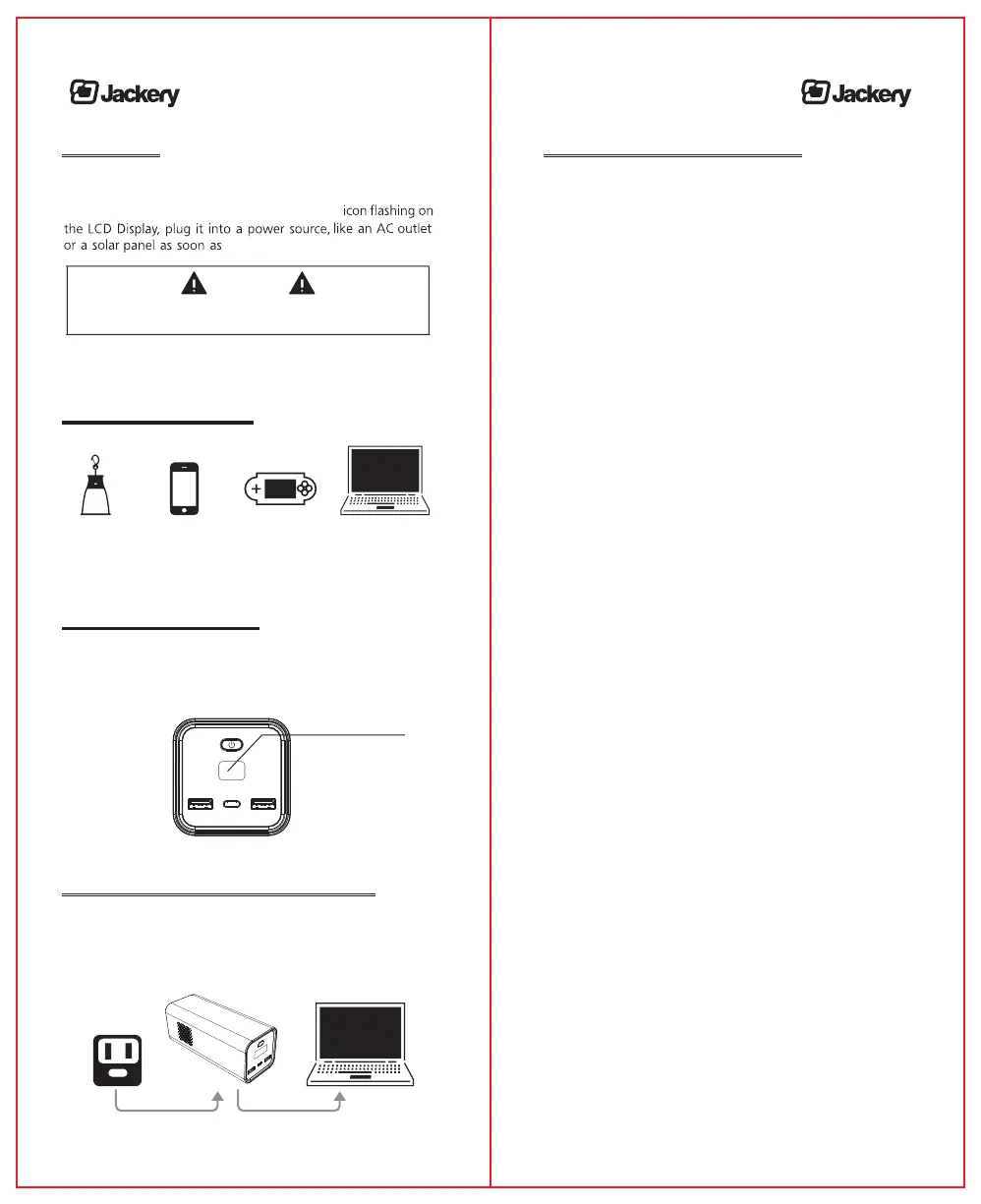 • When recharging devices with Jackery Power Bar, take note of the