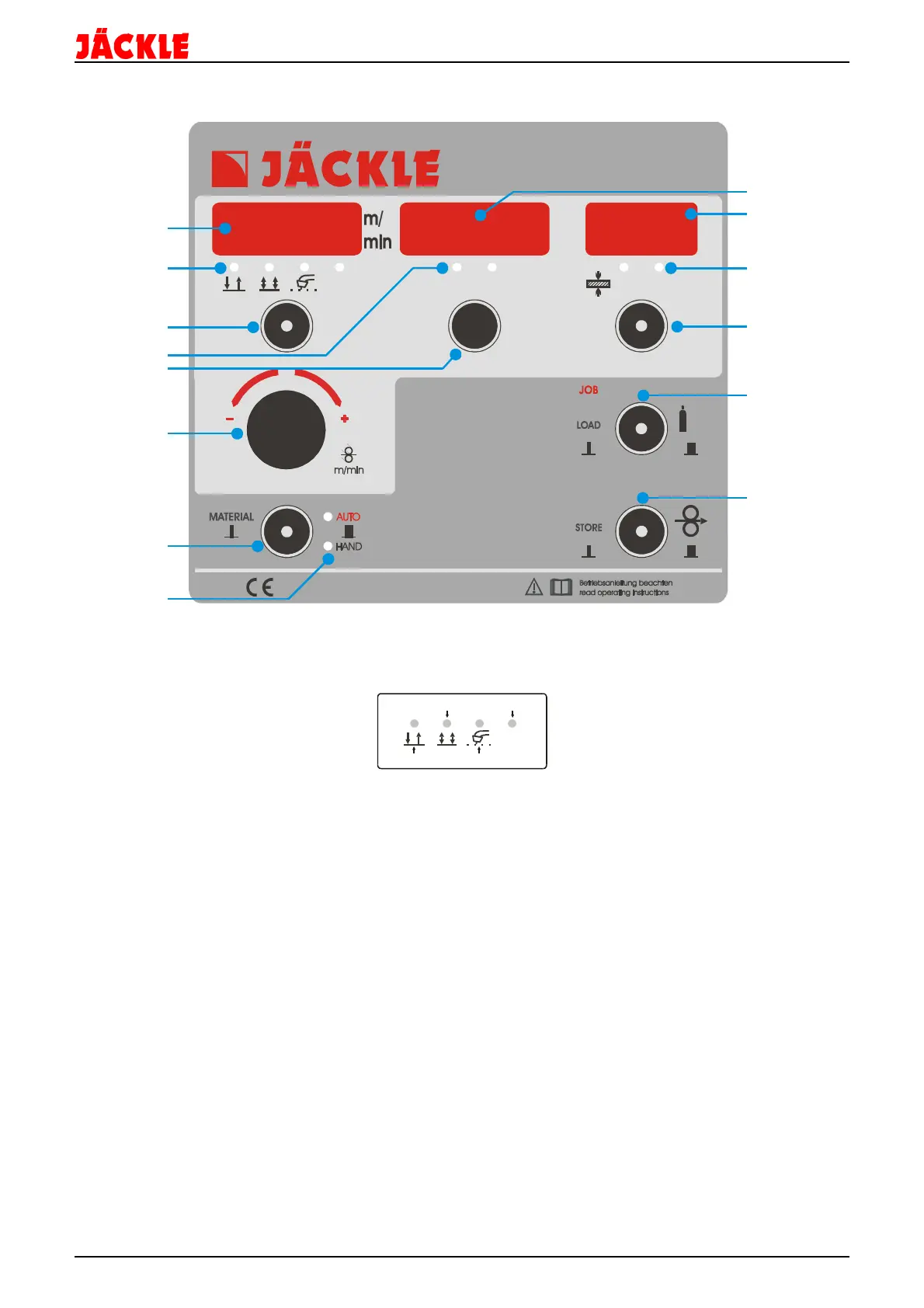 7 – Bedientaste für die Materialauswahl (antippen kürzer als 0,5 Sekunden), bzw. Einstellung Hand oder