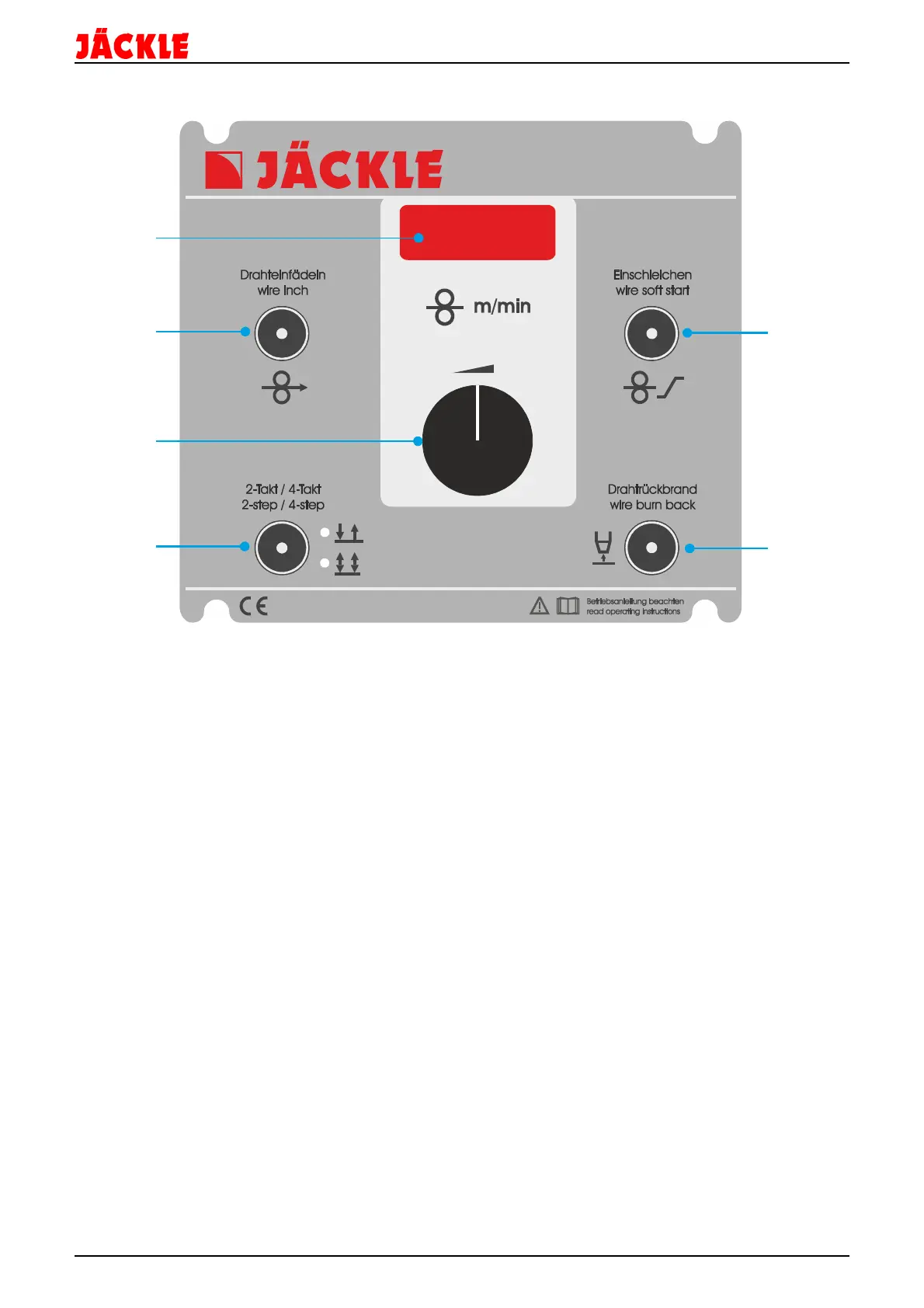 1 – Display for the wire speed, wire soft start and wire burn back value
