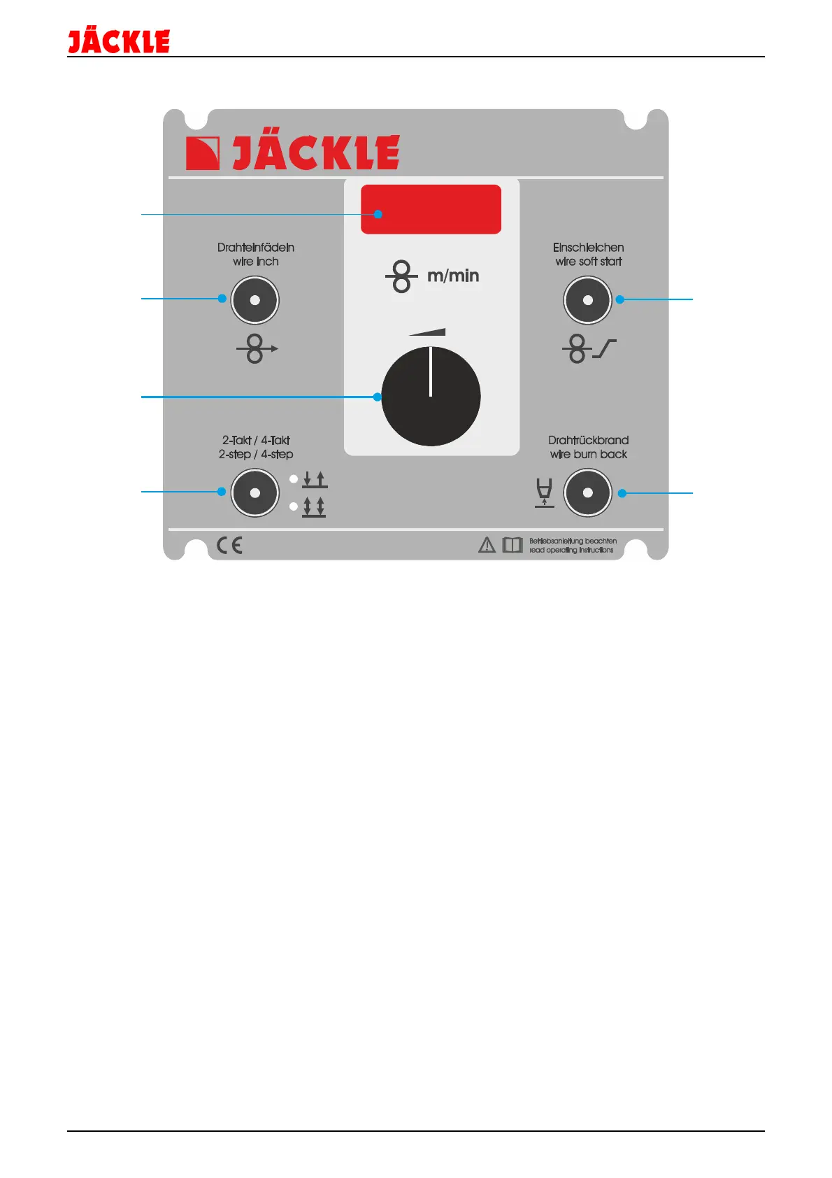 1 – Display for the wire speed, wire soft start and wire burn back value
