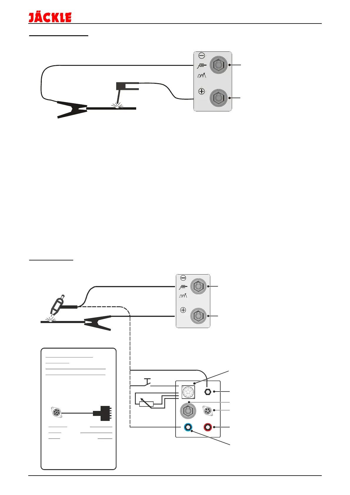 Elektrodenhalter wie im Bild dargestellt an die Plusbuchse anschließen.