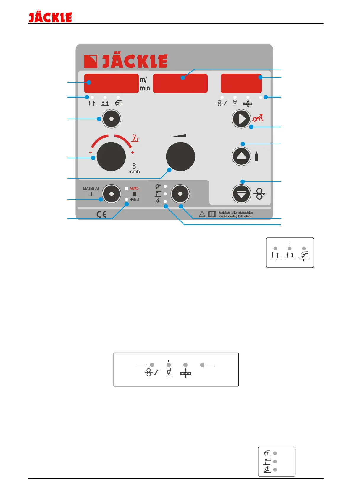 10 - LED display if the start speed, burn-back-time, the material thickness or the welding current is active