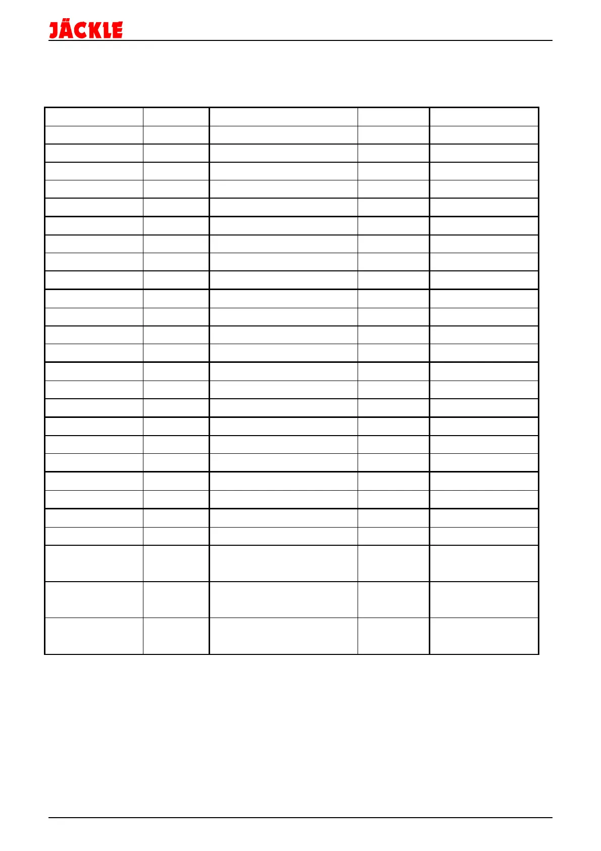 The following materials are standard in the control unit: