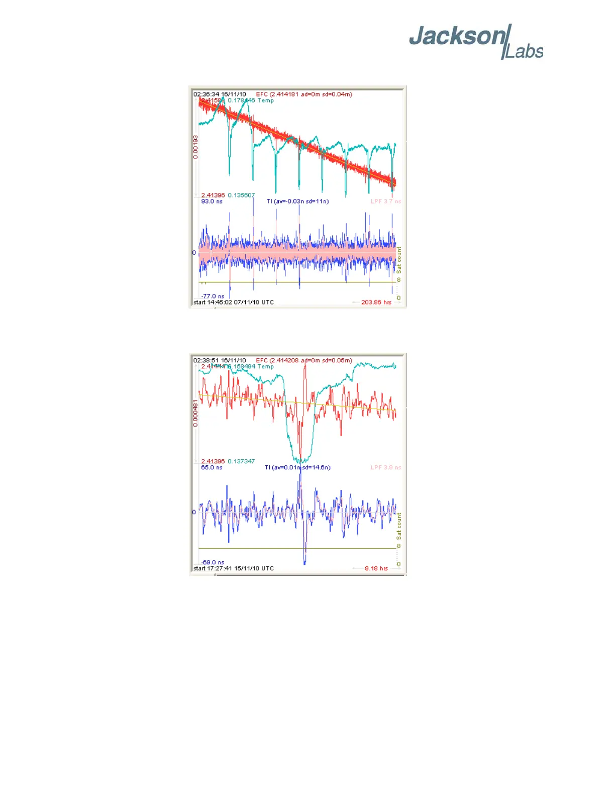 hours The red trace is EFC (crystal frequency control voltage). The crystal is aging (becoming faster
