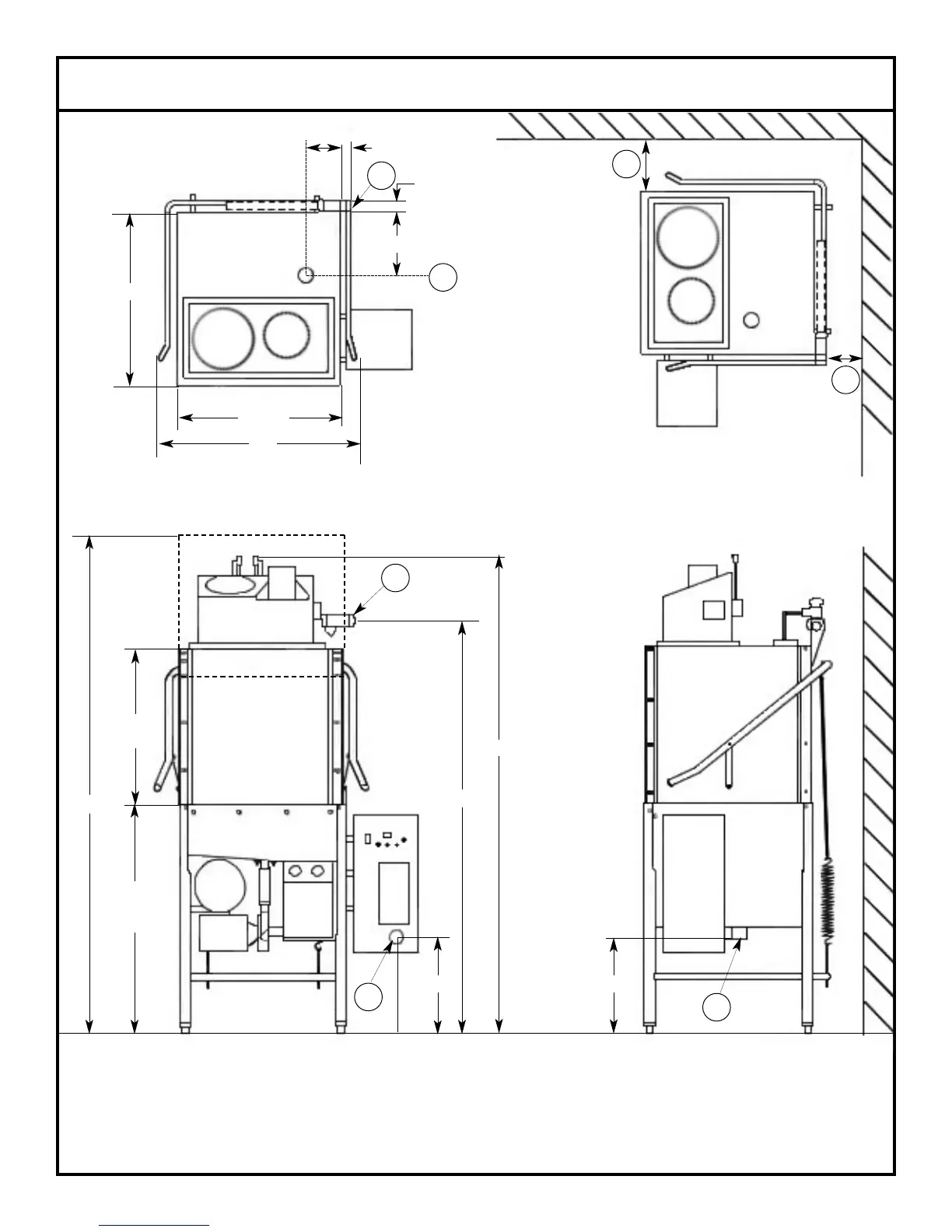 D - Standard wall clearance with dishtable 4”