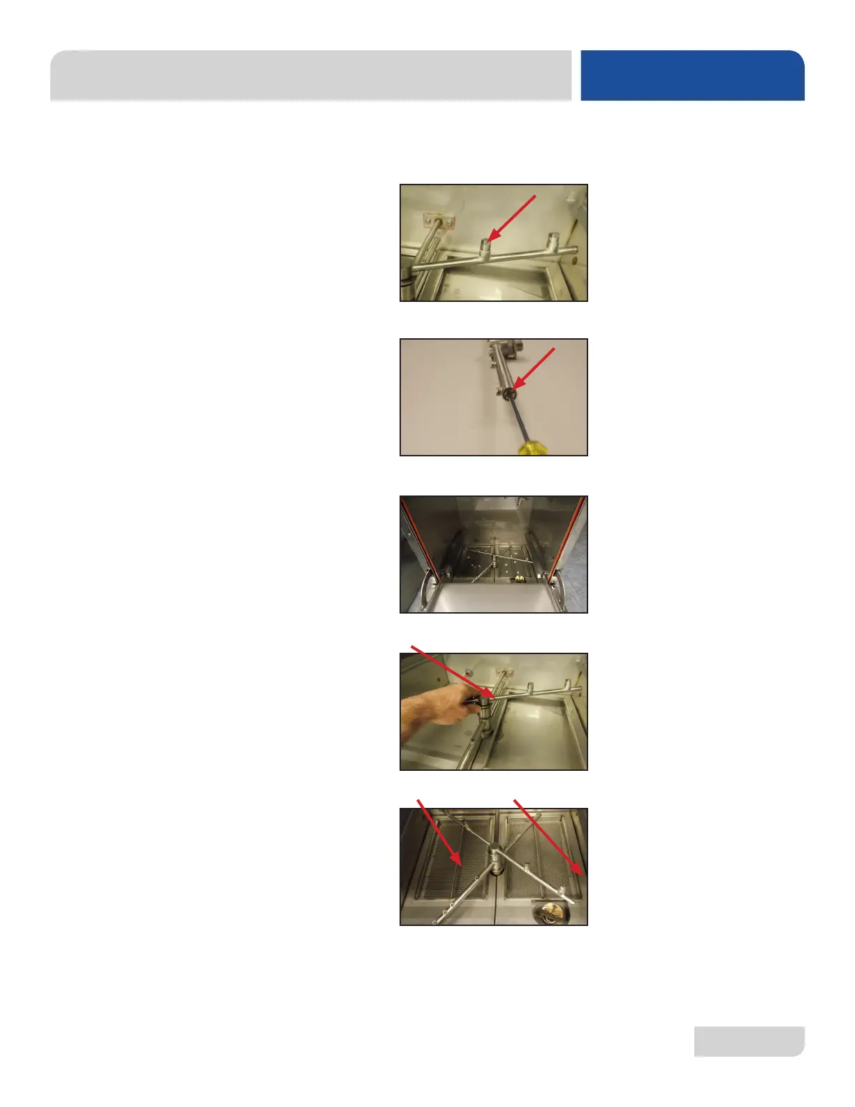 6. Verify the nozzles and arms are free from obstruction. If clogged, remove end-