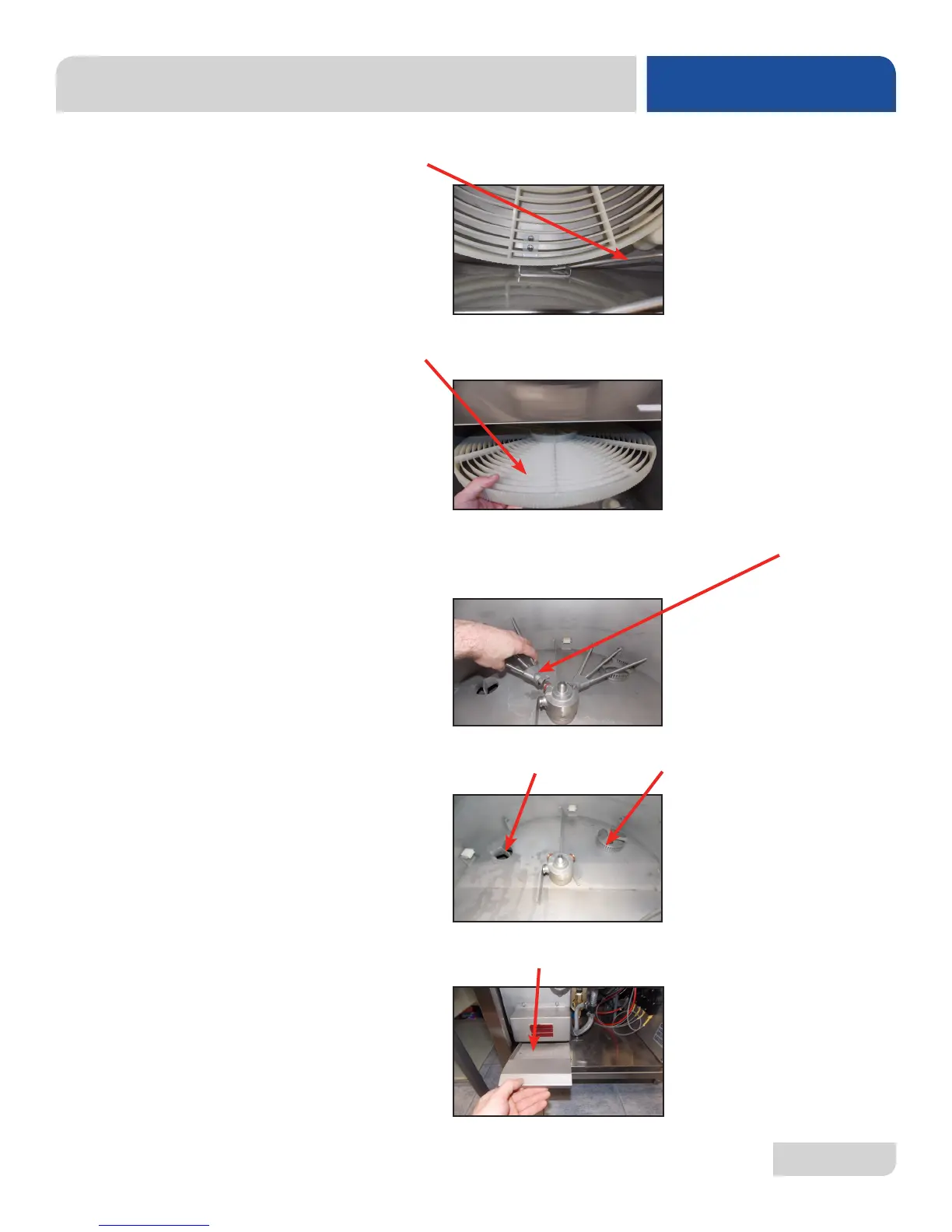 10. Push the wash and rinse arms away from their manifolds and remove. Remove
