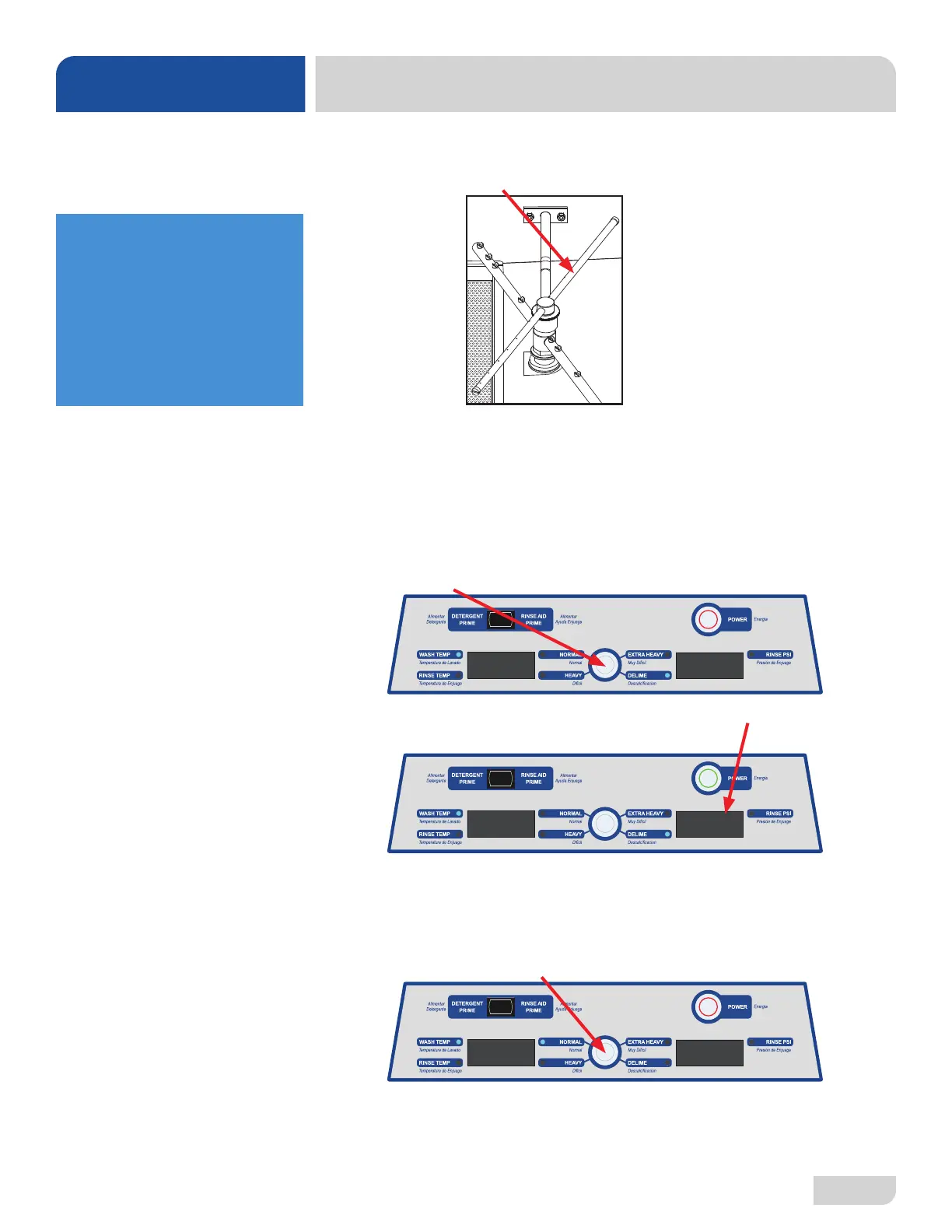 1. Remove rinse arms and place in sink with deliming solution (leave for amount of