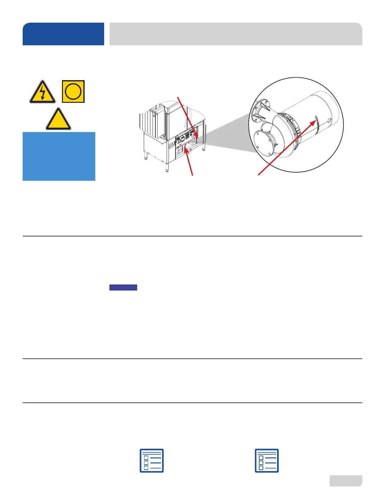 motor rotation (if no decal is present, correct rotation is toward back of machine).