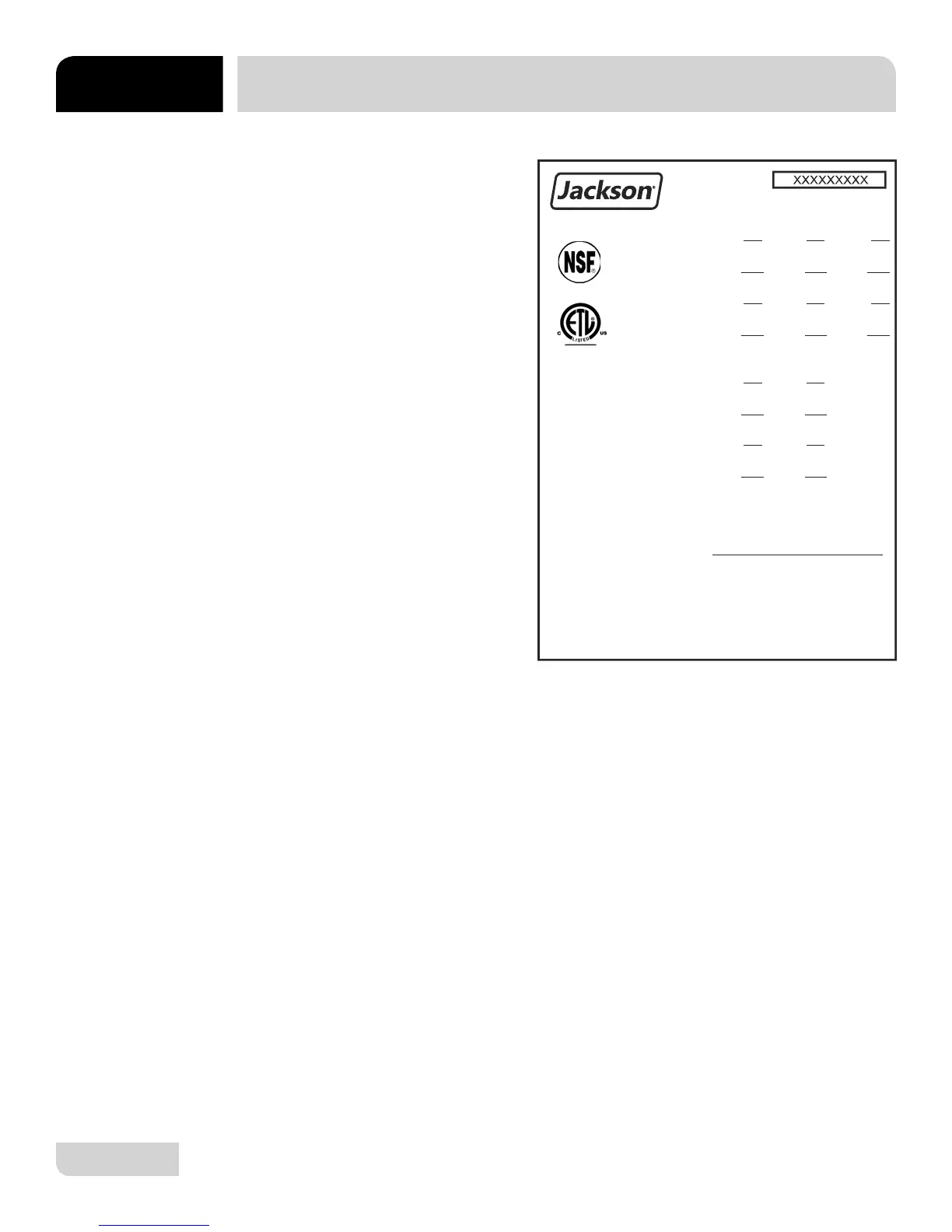 All work should be performed only by Authorized Jackson Service Agents.
