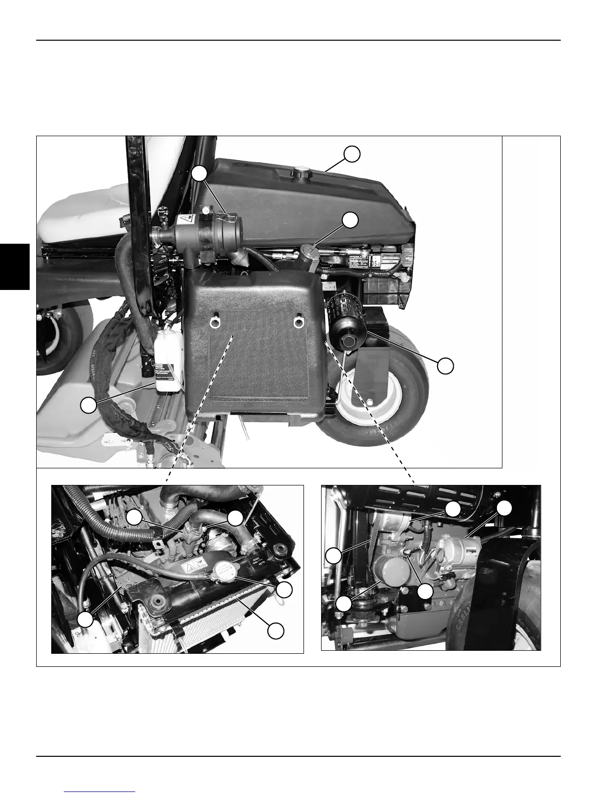 3 Muffler 7 Engine Oil Filter 11 Radiator 15 Air Cleaner Assembly