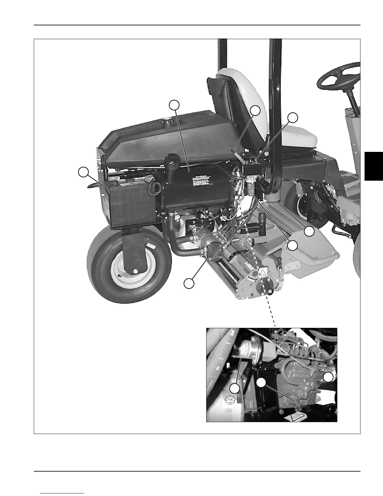 2 Throttle Control Lever 4 Hydraulic Oil Filter 6 Fuel Pump 8 Fuel Shutoff Solenoid 10 Battery