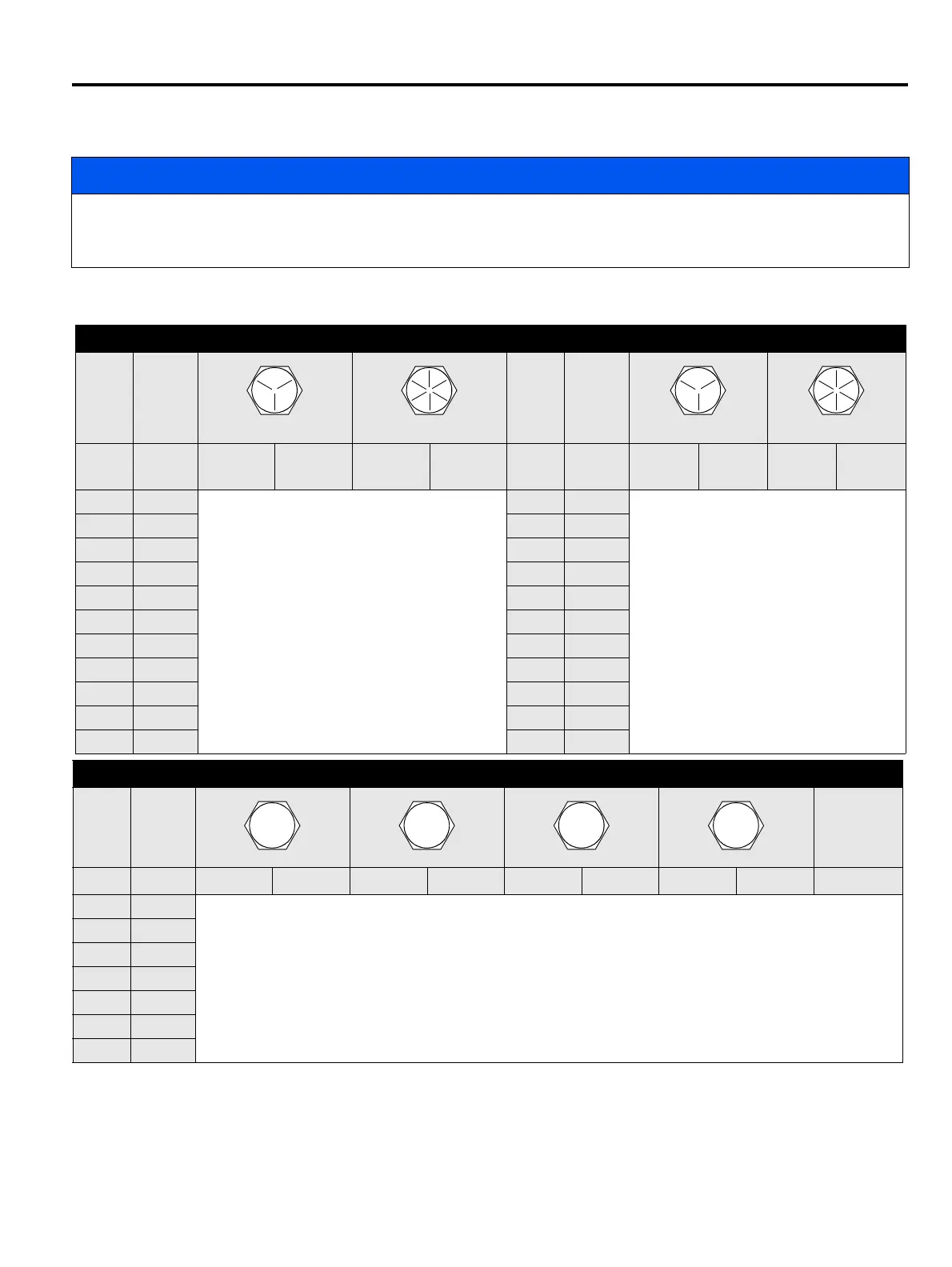 5/16-18 in-lb (Nm) 157 (17.7) 210 (23.7) 220 (24.8) 305 (34.4) 5/8-18 ft-lb (Nm) 128 (173) 170 (230) 180 (244) 240 (325)