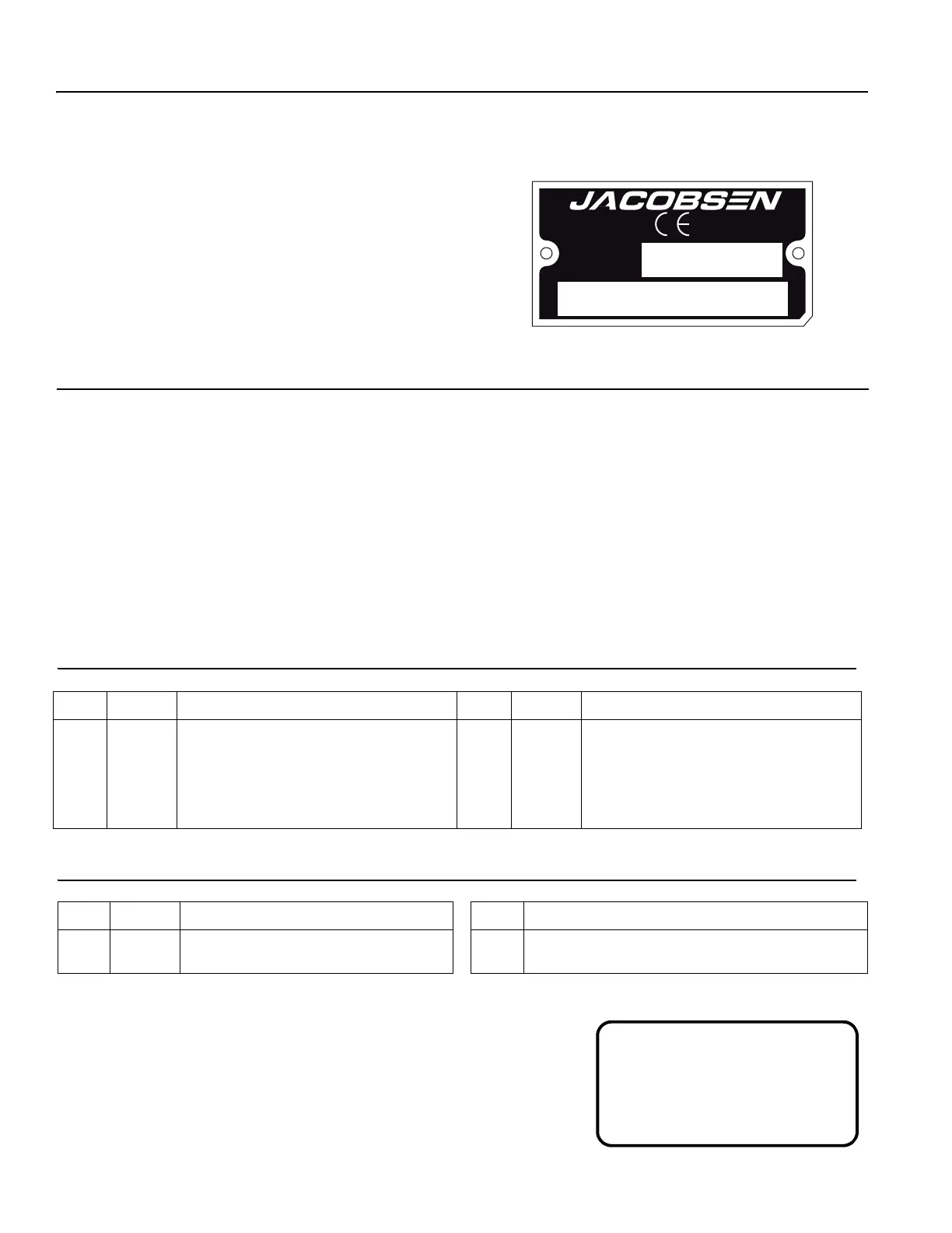 Jotta laite toimisi asianmukaisesti ja tehokkaasti, Jacobsen suosittelee, että pidät varastossa yleisimmin käytettyjä