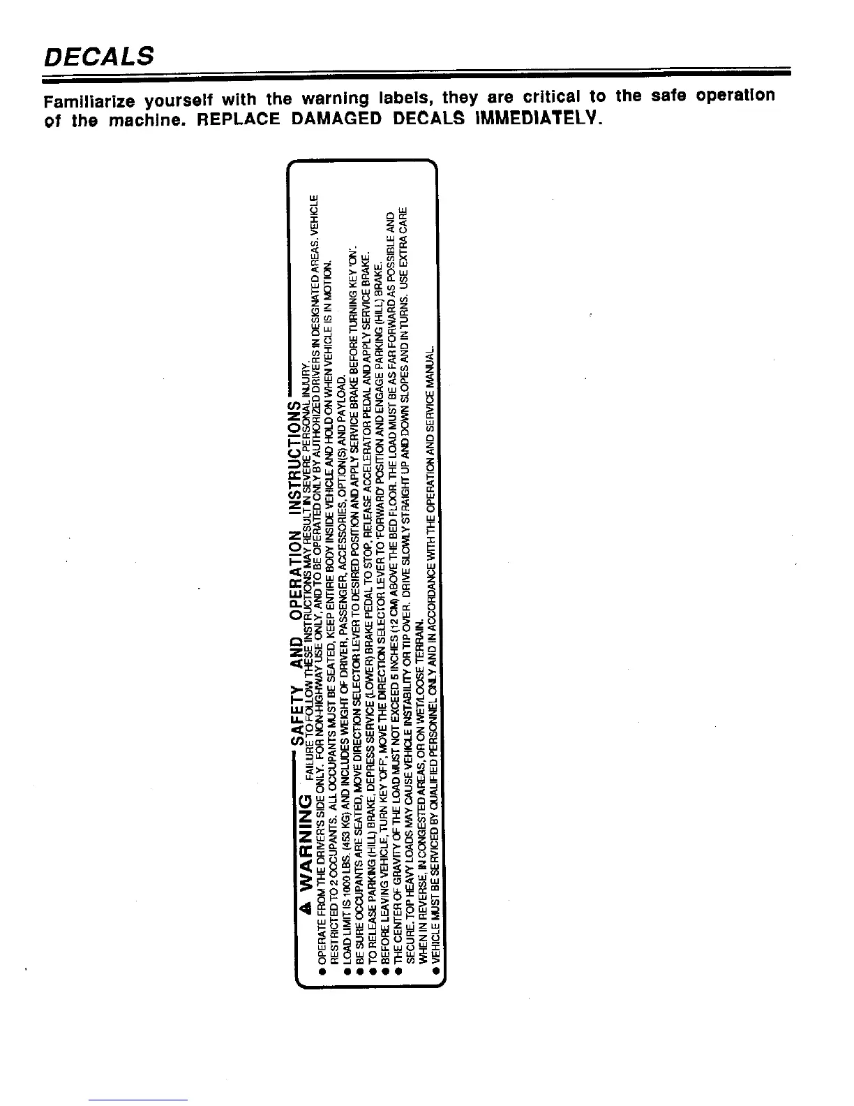 Jacobsen 810 - Decals and Safety Labels; Safety and Operation Instructions Decal
