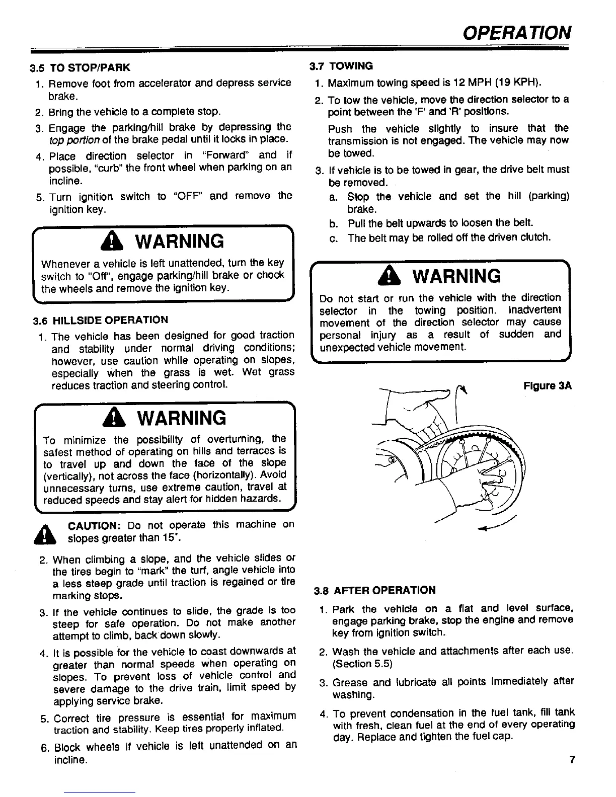 Jacobsen 810 - Stopping and Parking Procedures; Hillside Operation Guidelines; Towing Procedures; After Operation Tasks