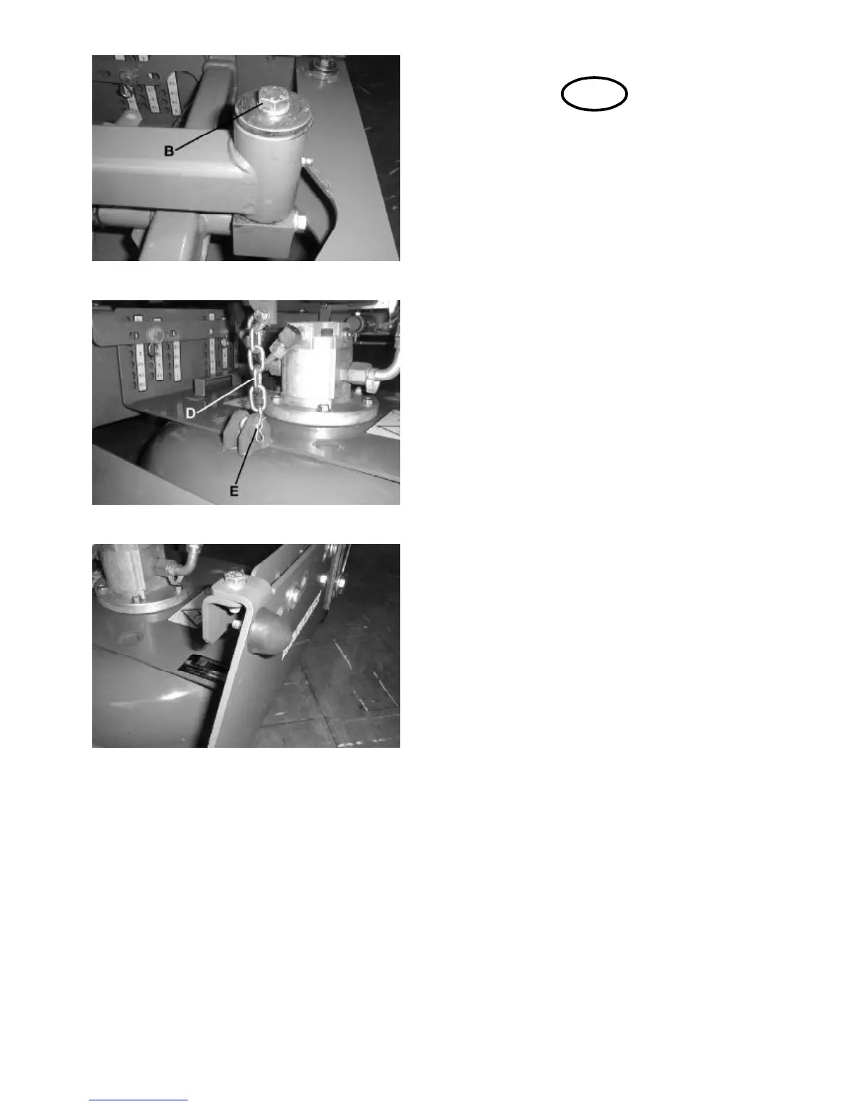 D to the deck with pin E. Secure pin