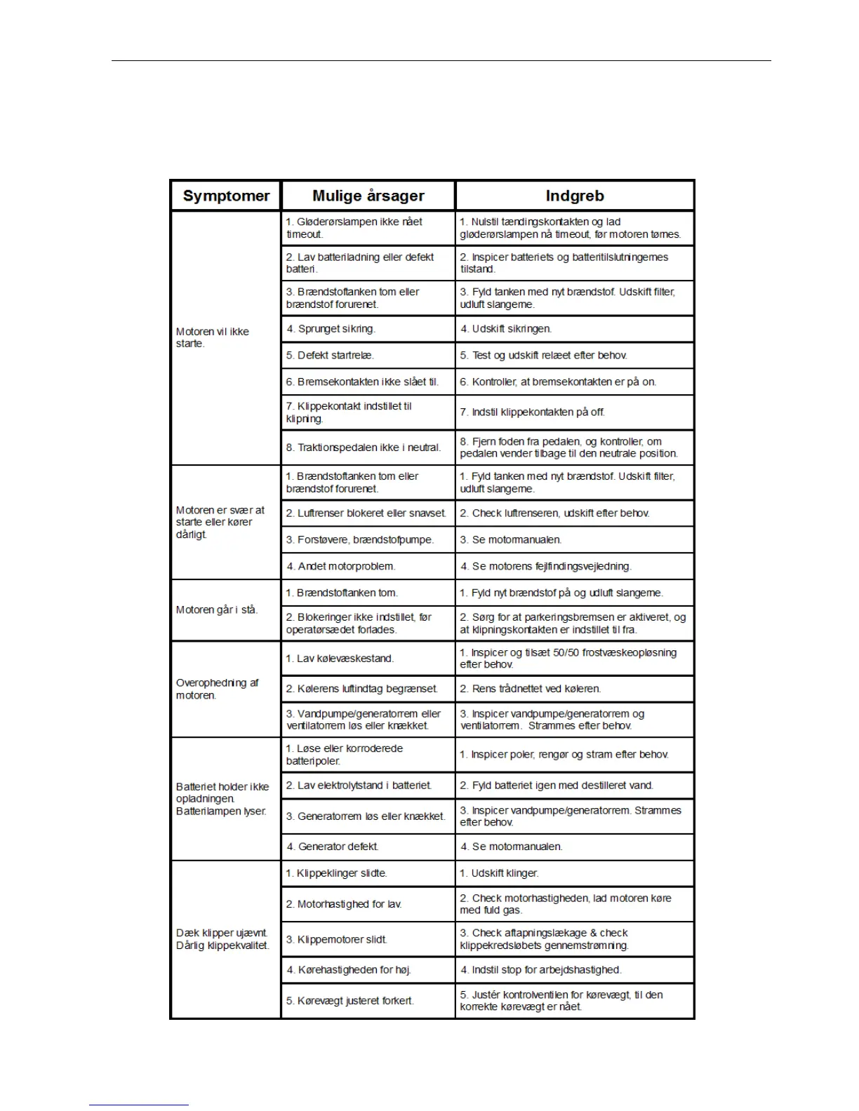 I fejlfindingsskemaet herunder er opført basale problemer, som kan indtræffe under opstart og drift. Kontakt den
