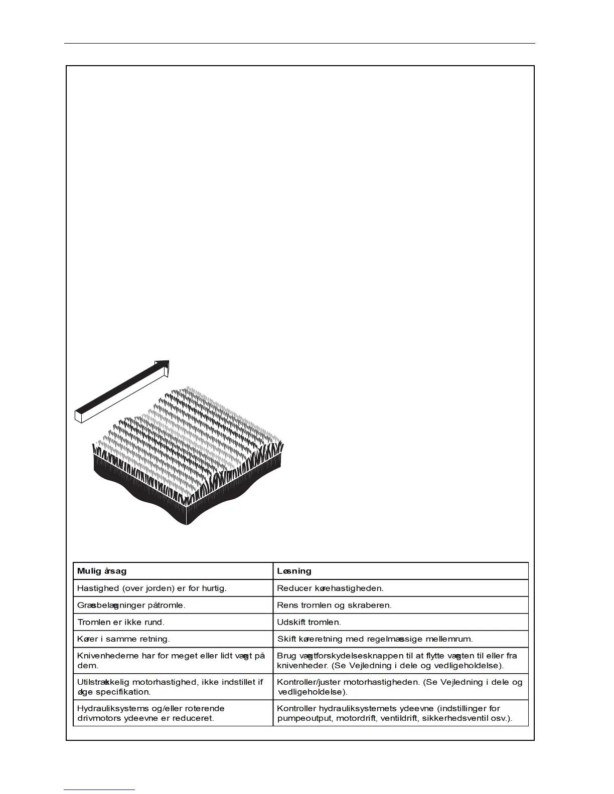 Det anbefales at udføre en “testklipning” for at evaluere plæneklipperens ydeevne, før du påbegynder