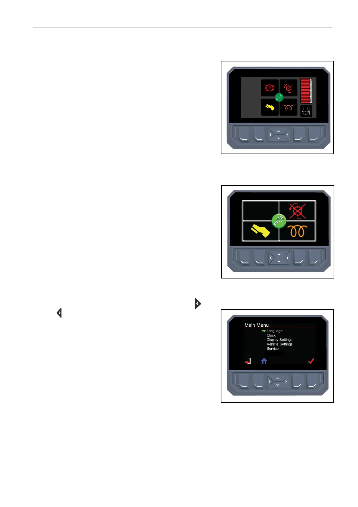 or right arrow keys to access the main menu.