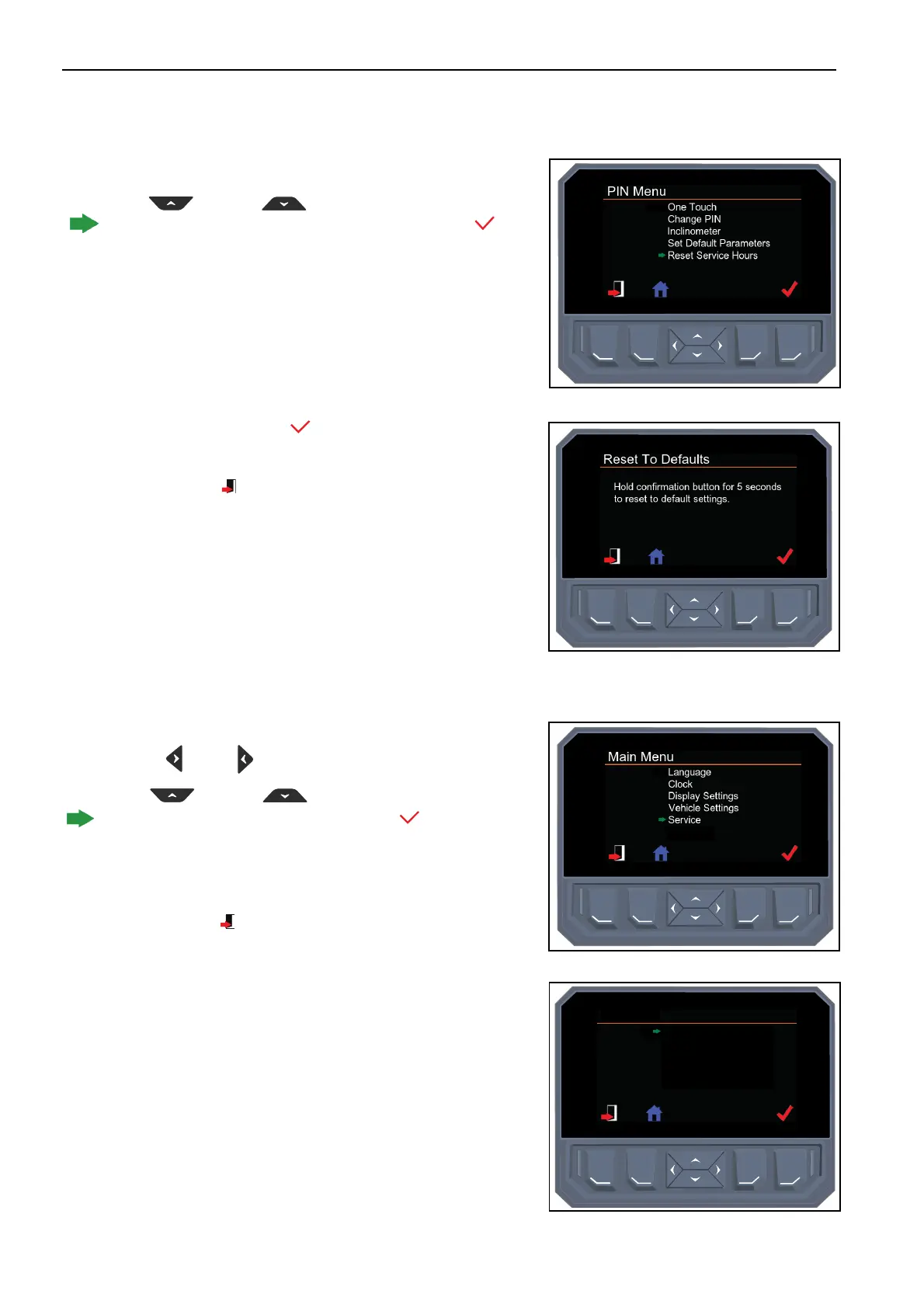 is next to reset service hours. Press the select button to